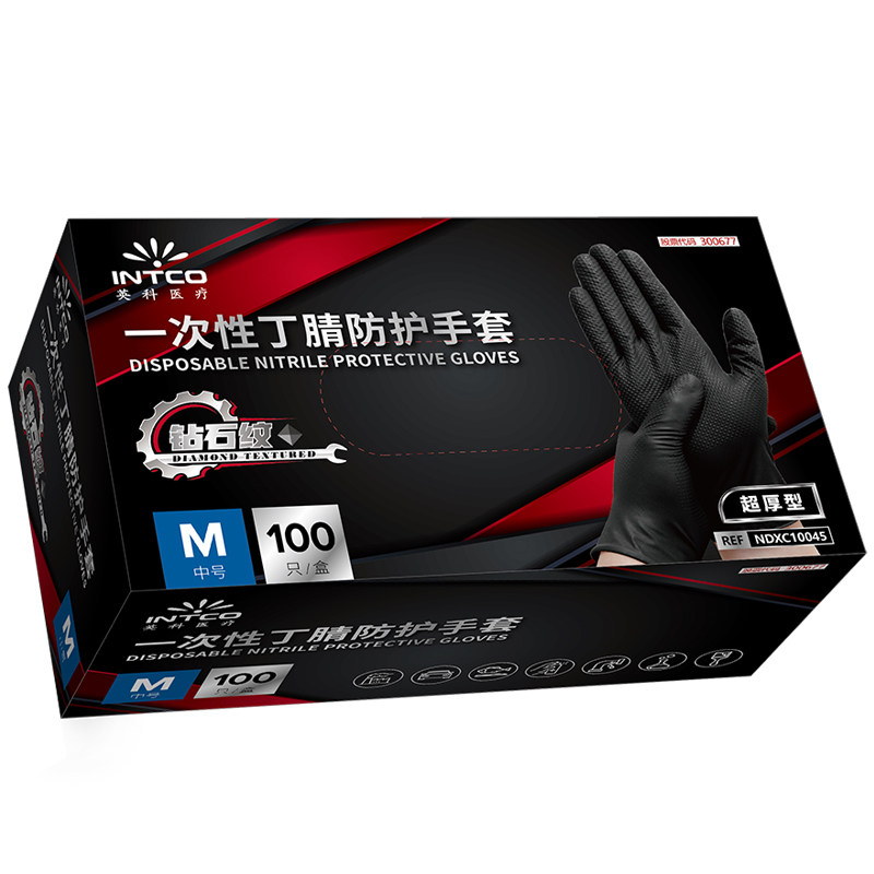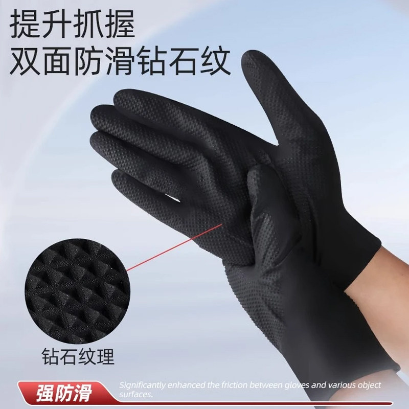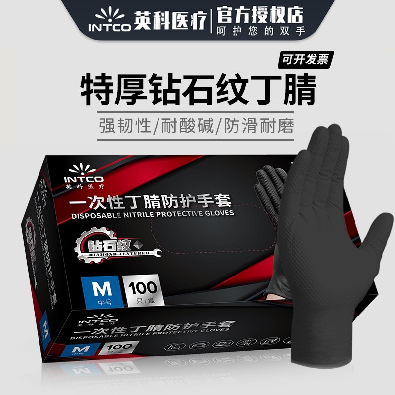 英科一次性丁腈手套加厚耐磨汽修钻石纹橡胶防油防滑防水美甲静电
