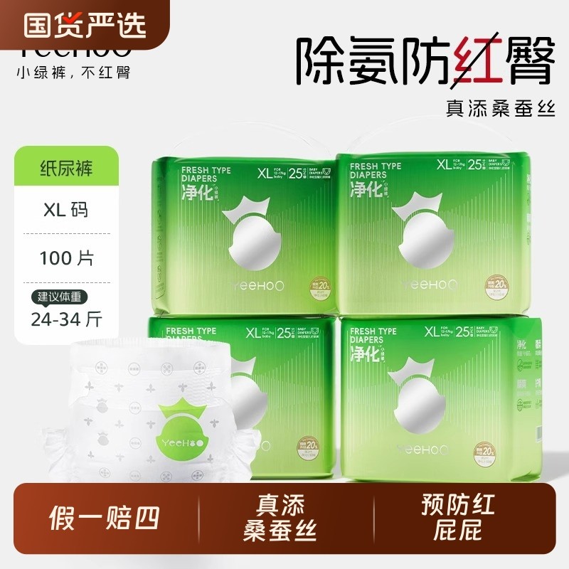 YeeHoO小绿裤超薄透气婴儿纸尿裤干爽防漏尿不湿拉拉裤