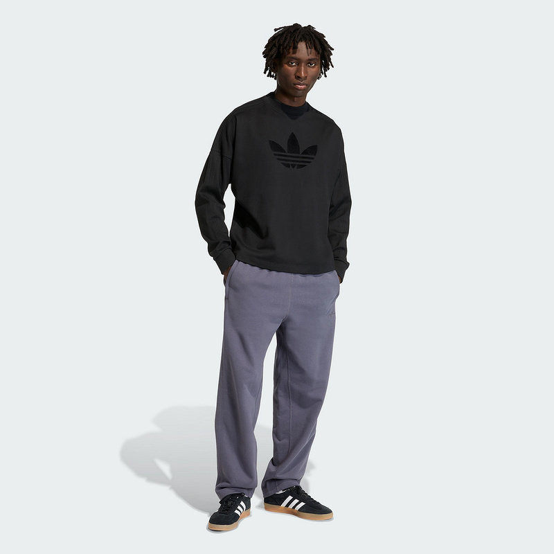 adidas阿迪达斯三叶草大LOGO黑色上衣ESSENTIALS男长袖T恤 KD6575
