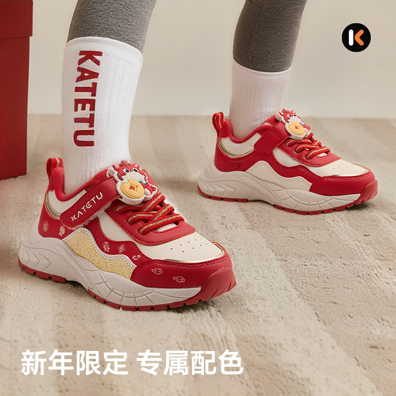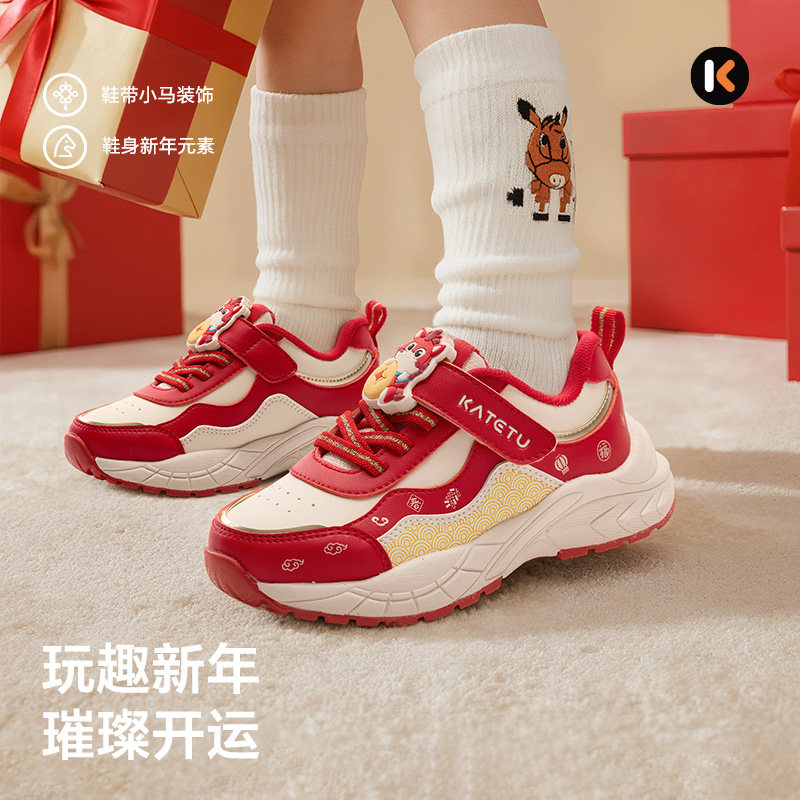 卡特兔新年红童鞋女童运动鞋2025冬季新品鞋子老爹鞋男童儿童棉鞋