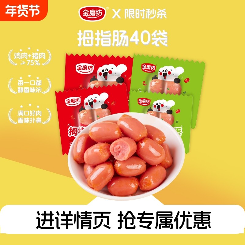 金磨坊拇指肠100粒小香肠迷你肉枣肠抗饿零食休闲食品台式肉香肠