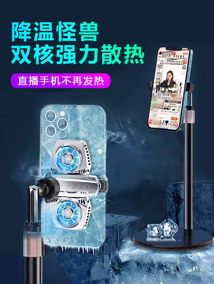 BYR 快速降温制冷直播散热器机器臂手机铝合金支架360度旋转俯拍