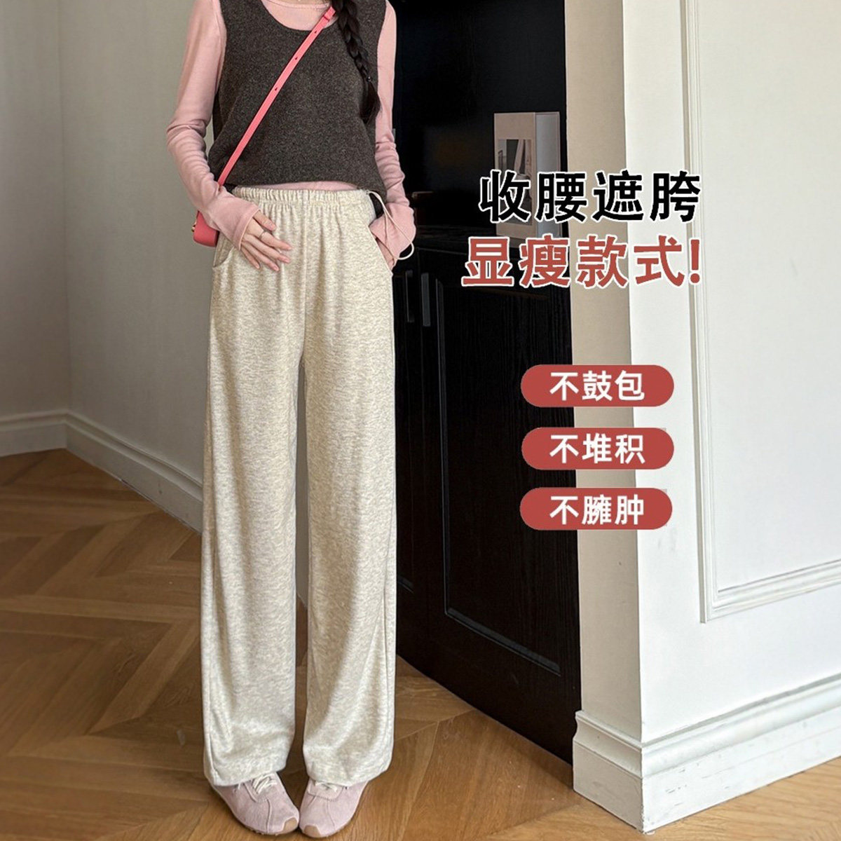 孕之优品孕妇裤秋冬外穿2025新款垂感加绒糯米裤无托腹孕妇阔腿裤
