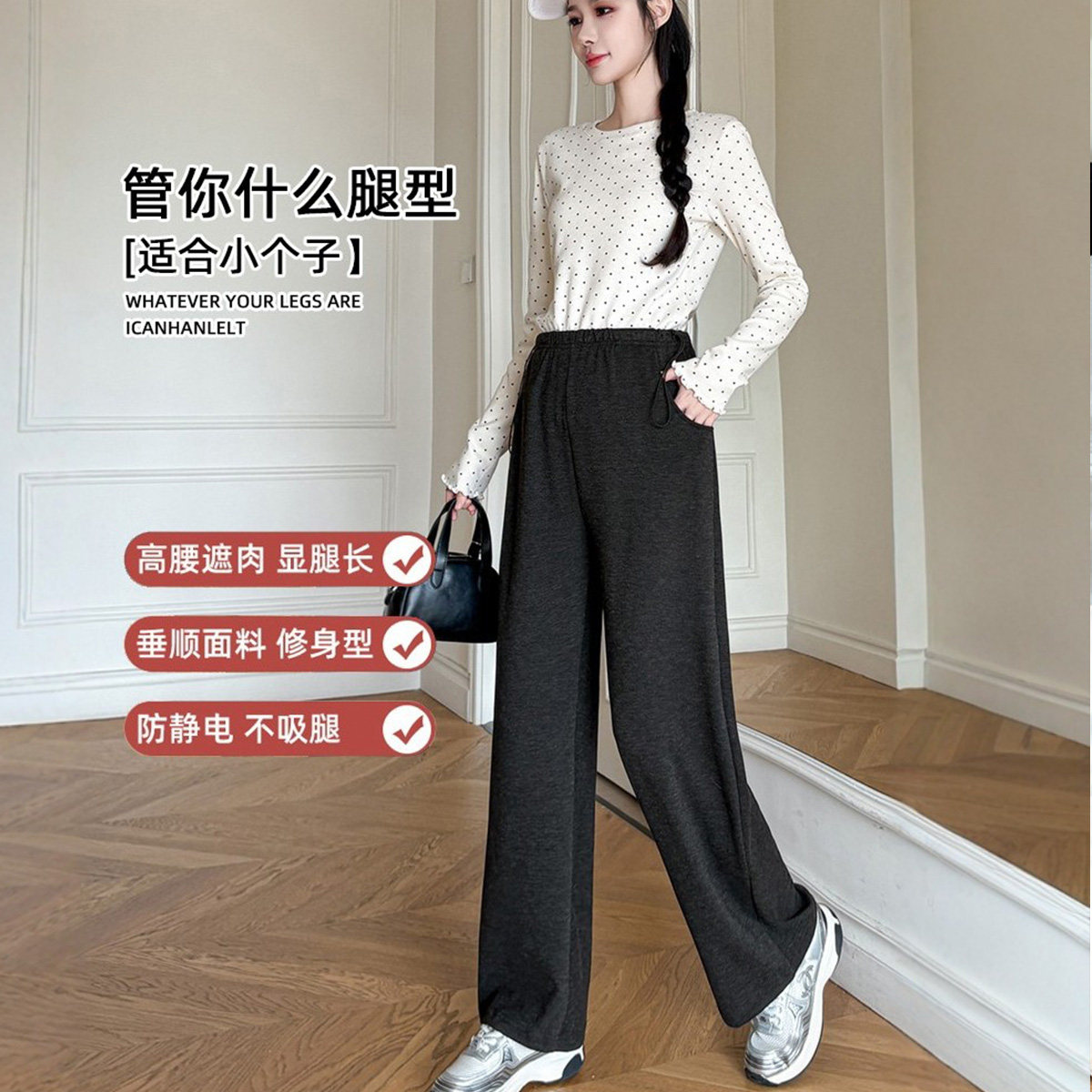 十月结晶孕妇裤冬季小个子垂感阔腿裤松紧腰部妈妈外穿加绒长裤女