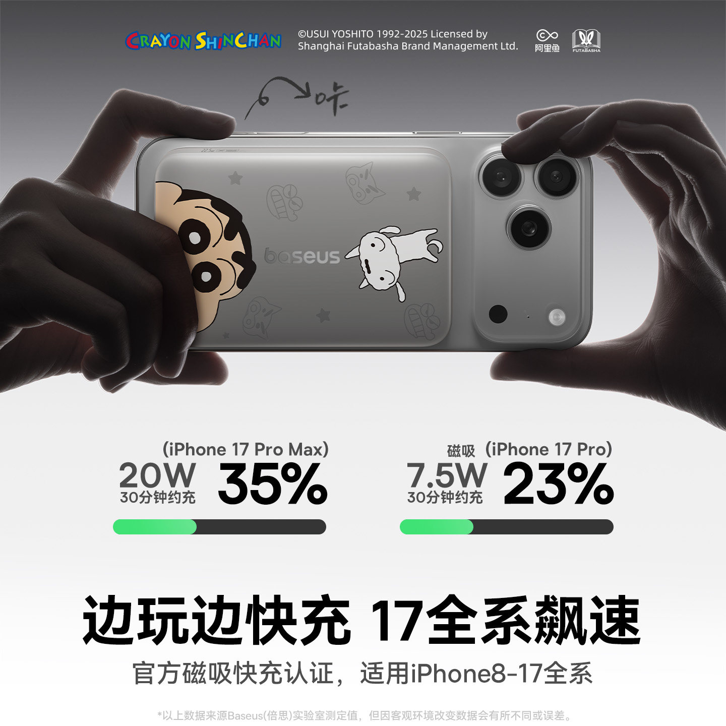 【蜡笔小新正版授权】倍思2026新款3c认证磁吸无线充电宝超薄便携适用苹果17专用快充国家移动电源可上飞机