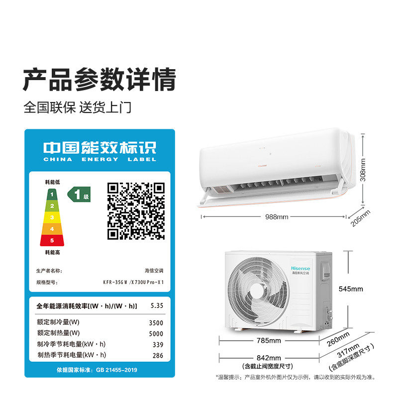 海信新风空调深睡宝X3pro大1.5匹挂机一级变频卧室家用换新补贴