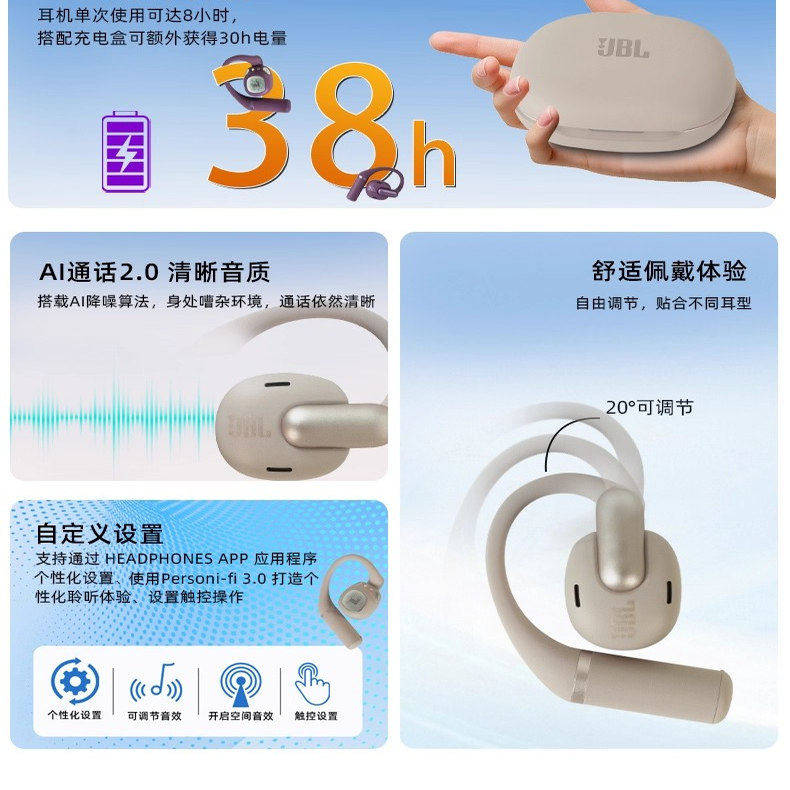 JBL Sense Pro挂耳式蓝牙耳机无线运动开放式耳机跑步耳机降噪