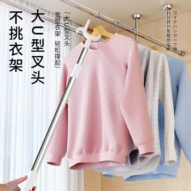 晾衣杆叉丫撑衣杆家用可伸缩晒衣服的衣架杆子宿舍不锈钢凉取衣叉