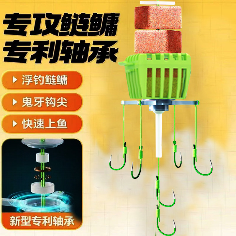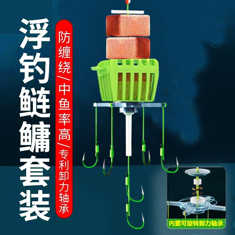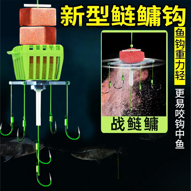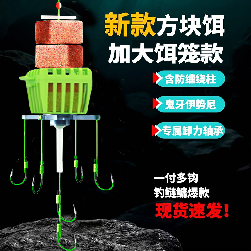 战鲢鳙方块钩旋转浮钓鲢鳙钓组饵笼翻板钩鱼钩方块线神器饵料新型