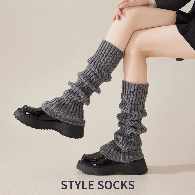 灰色袜套袜子女春秋季针织腿套显瘦长筒堆堆袜小腿袜配小皮鞋黑色