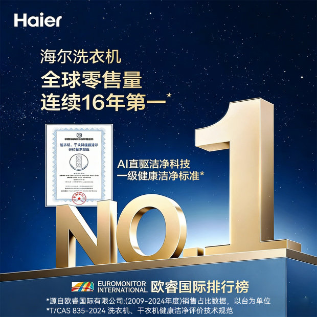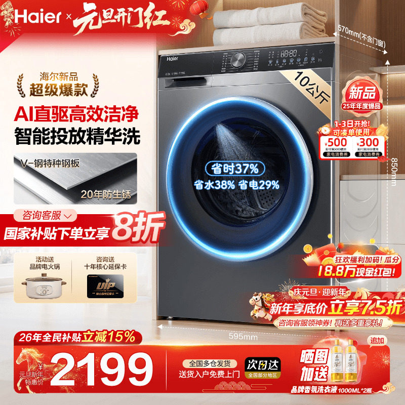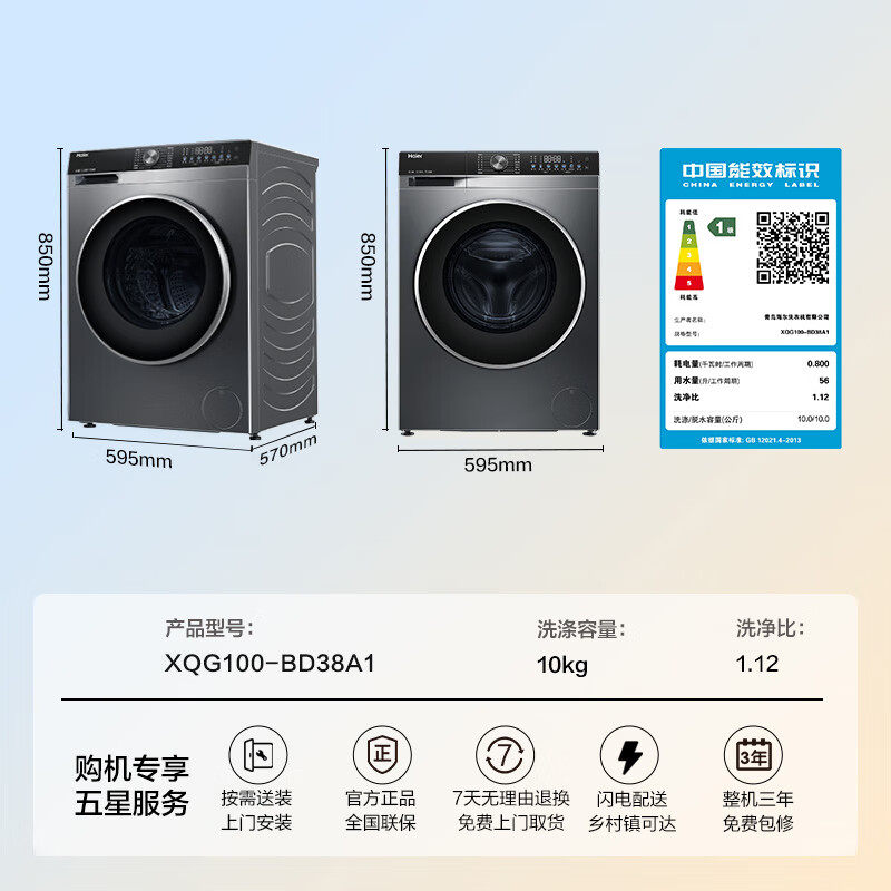 云溪爆款】海尔滚筒洗衣机77E家用全自动10公斤直驱洗烘38A旗舰店