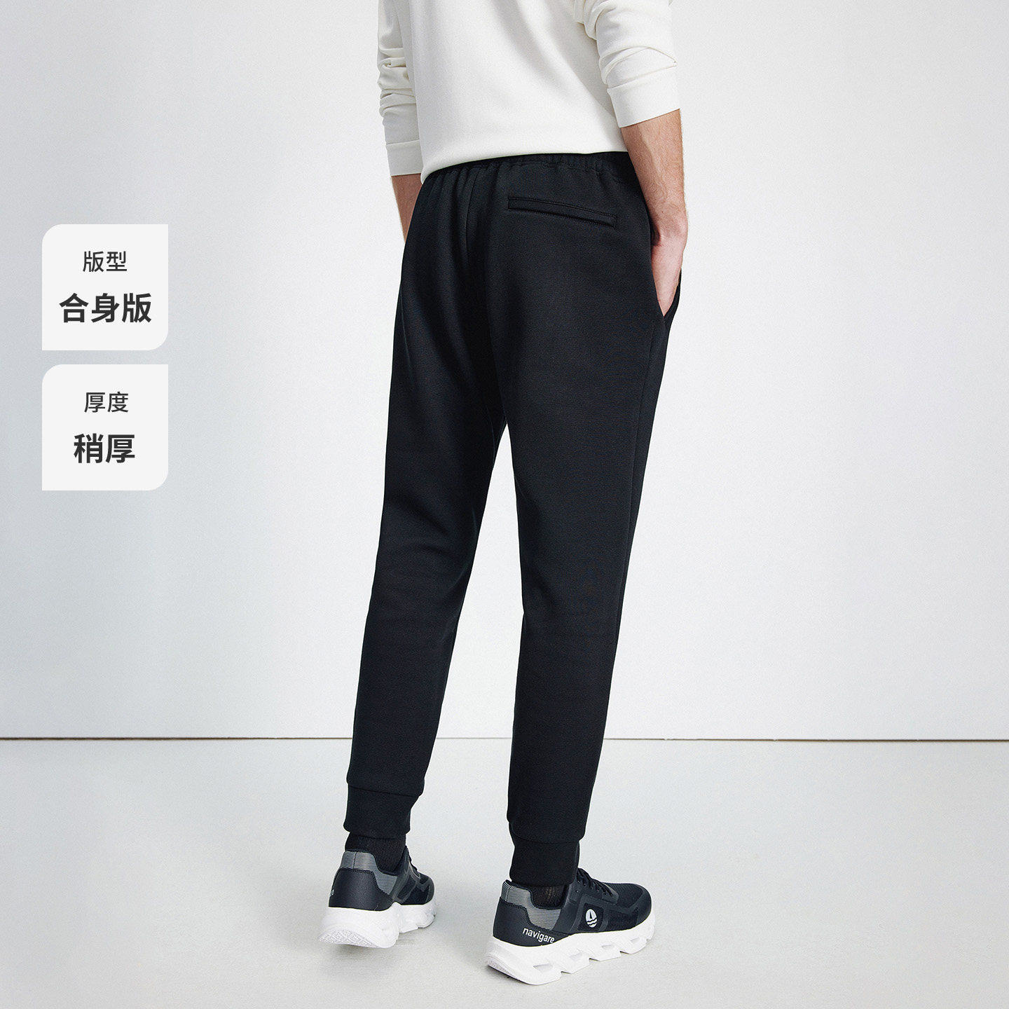 Navigare意大利小帆船黑色休闲卫裤男冬季加绒加厚运动束脚裤子