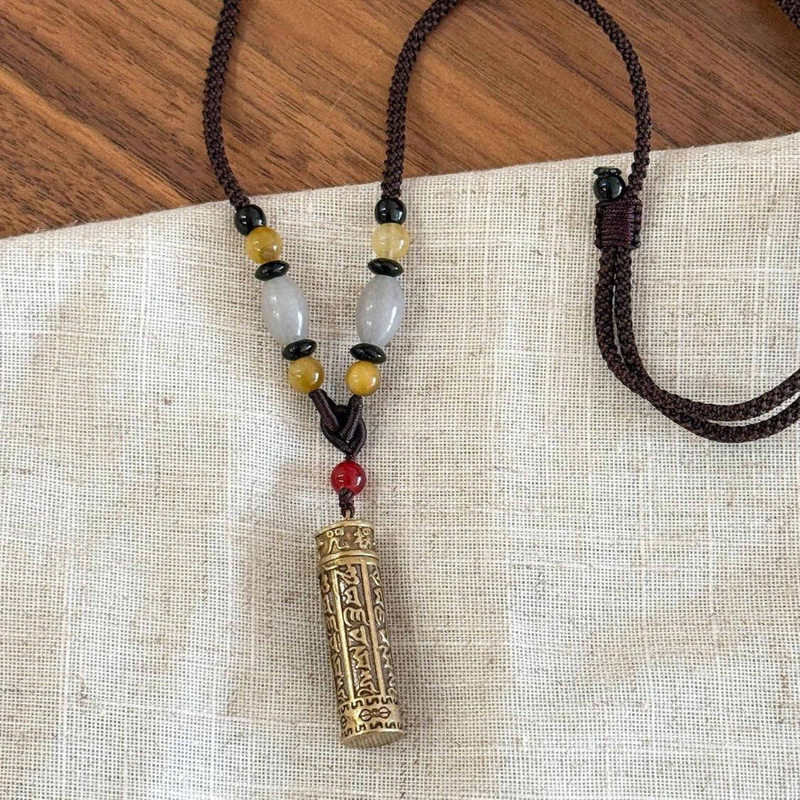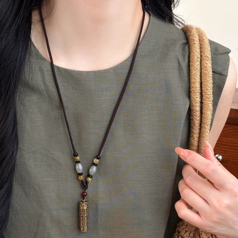 新中式可打开盒黄铜吊坠项链女2025新款民族风挂绳毛衣链配饰编织