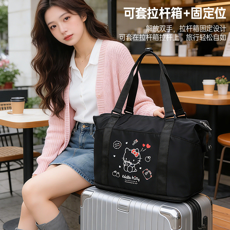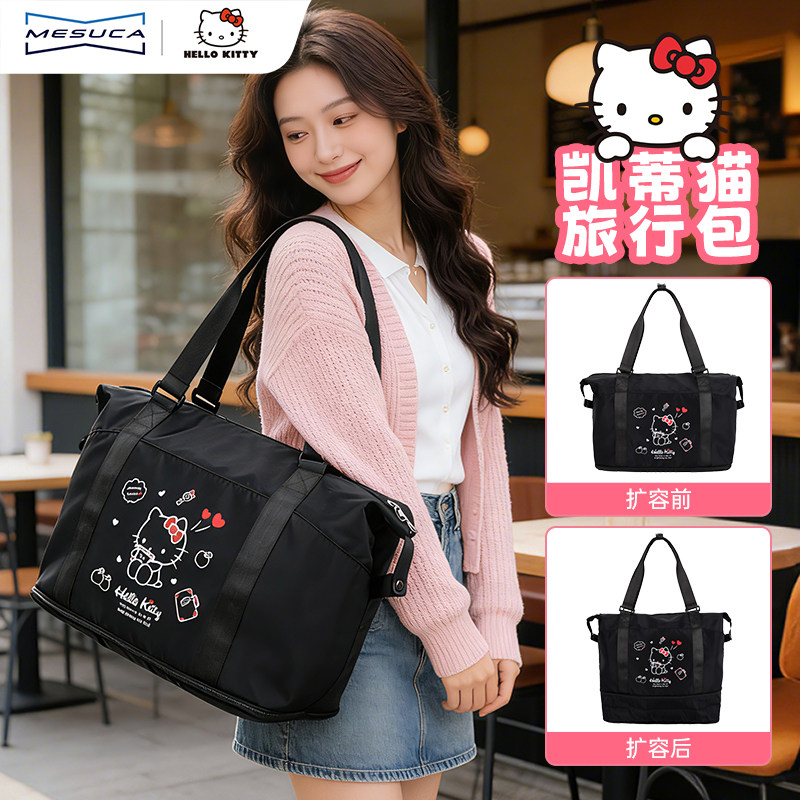 麦斯卡hellokitty短途旅行包大容量女轻便出差可折叠健身包行李袋