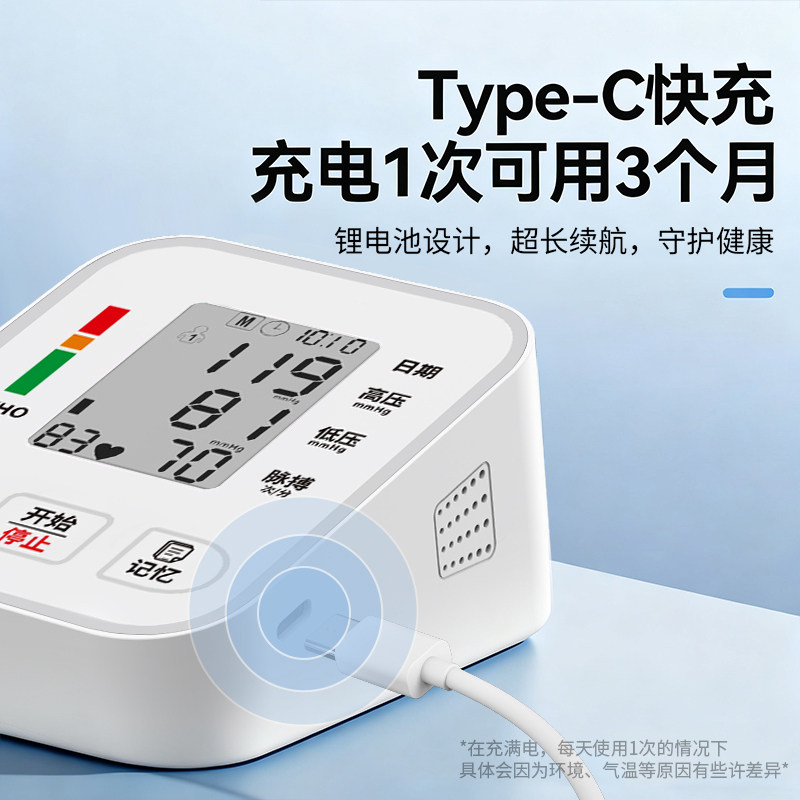 彤康宁血压测量仪家用上臂电子血压计充电式测量表老人全自动语音