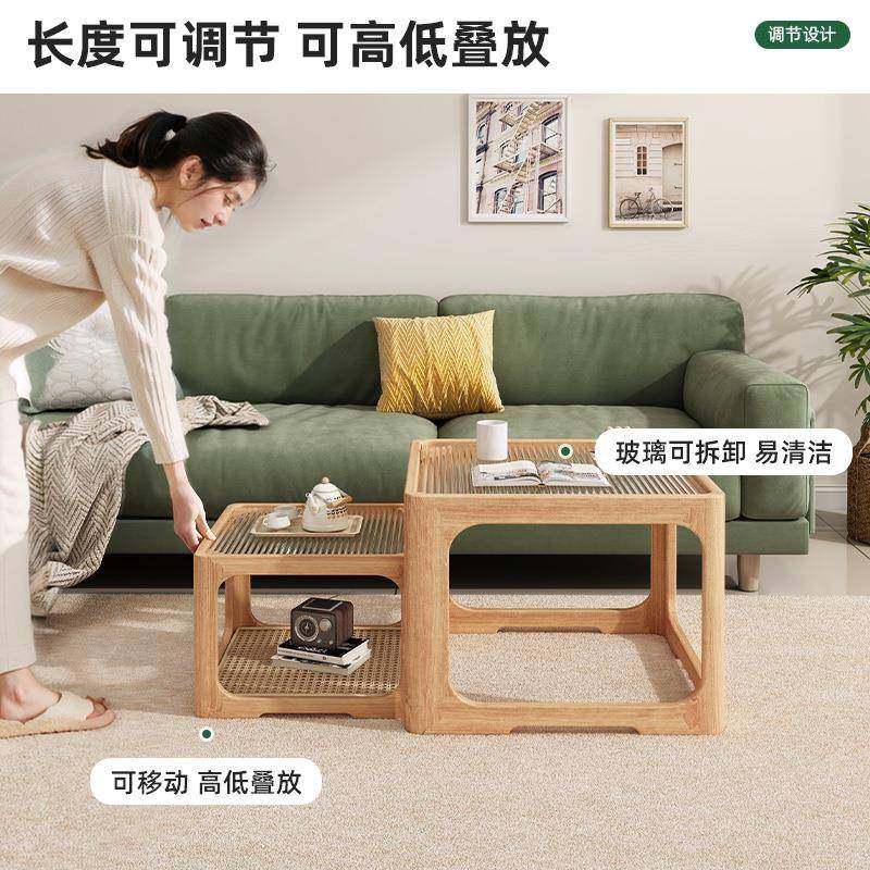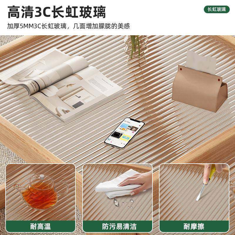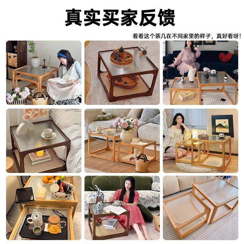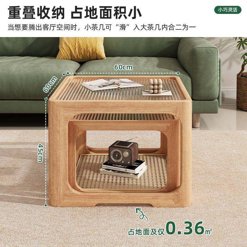 实木茶几客厅家用小户型钢化玻璃桌子2025新款原木风方形沙发边几