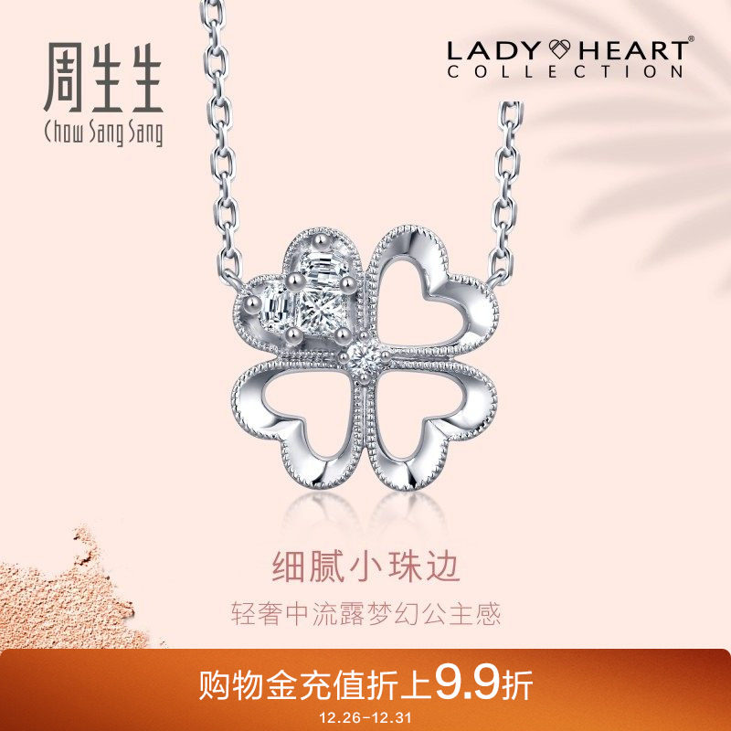 周生生18K金白色黄金金饰Lady Heart钻石项链 86085N