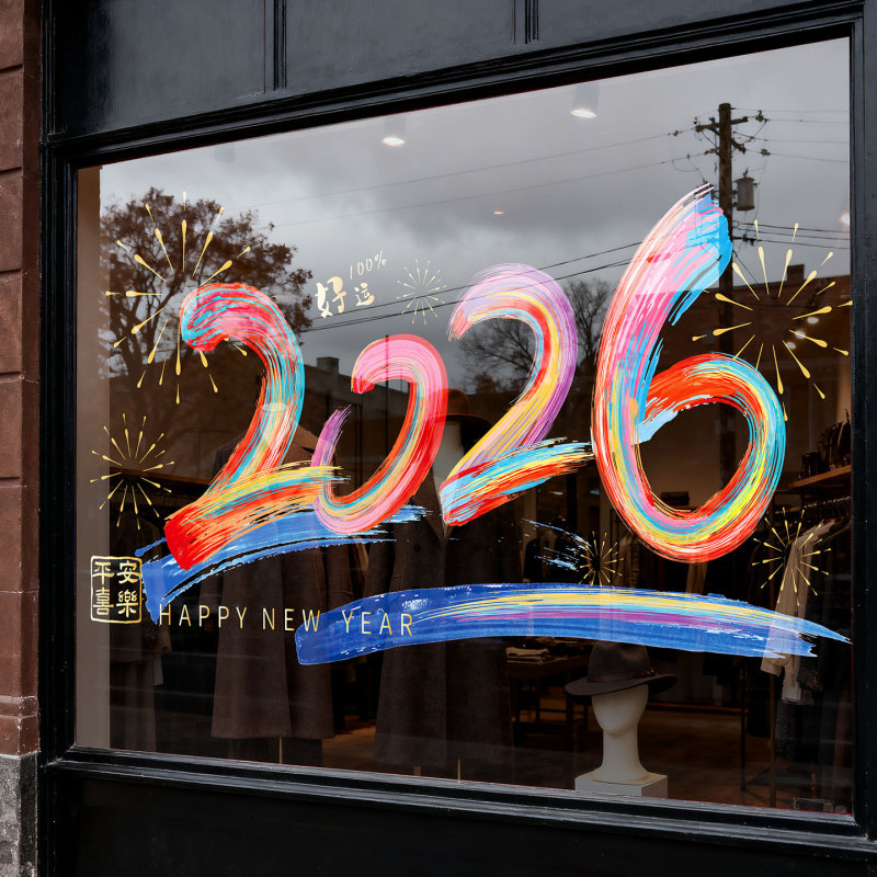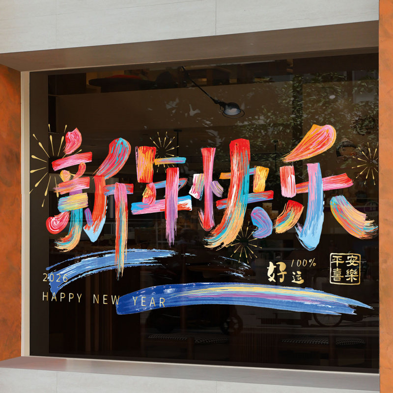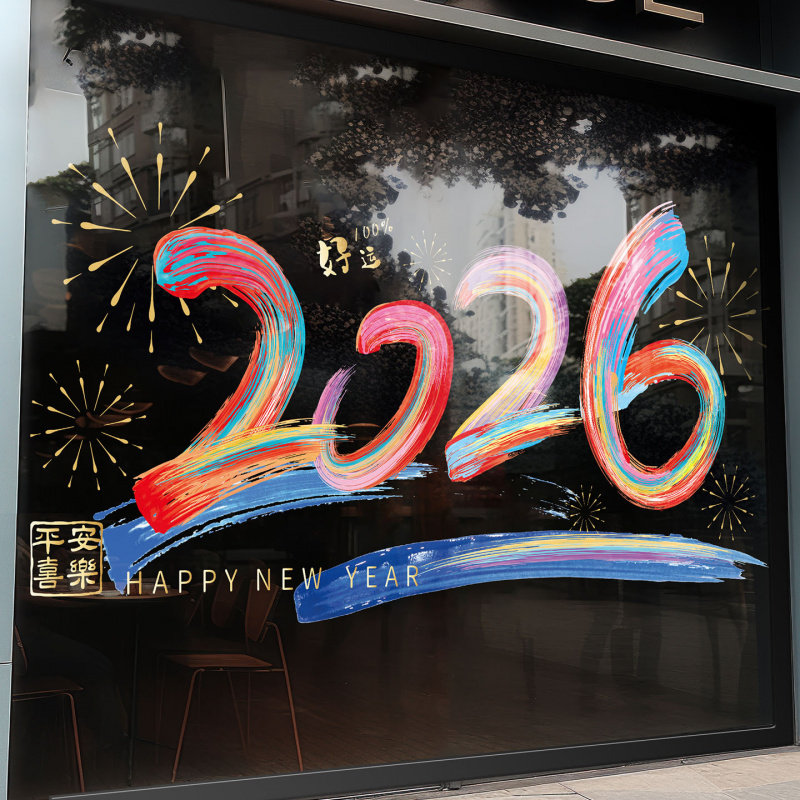 2026新年快乐春节橱窗玻璃贴新年马年装饰用品静电贴过年玻璃贴纸