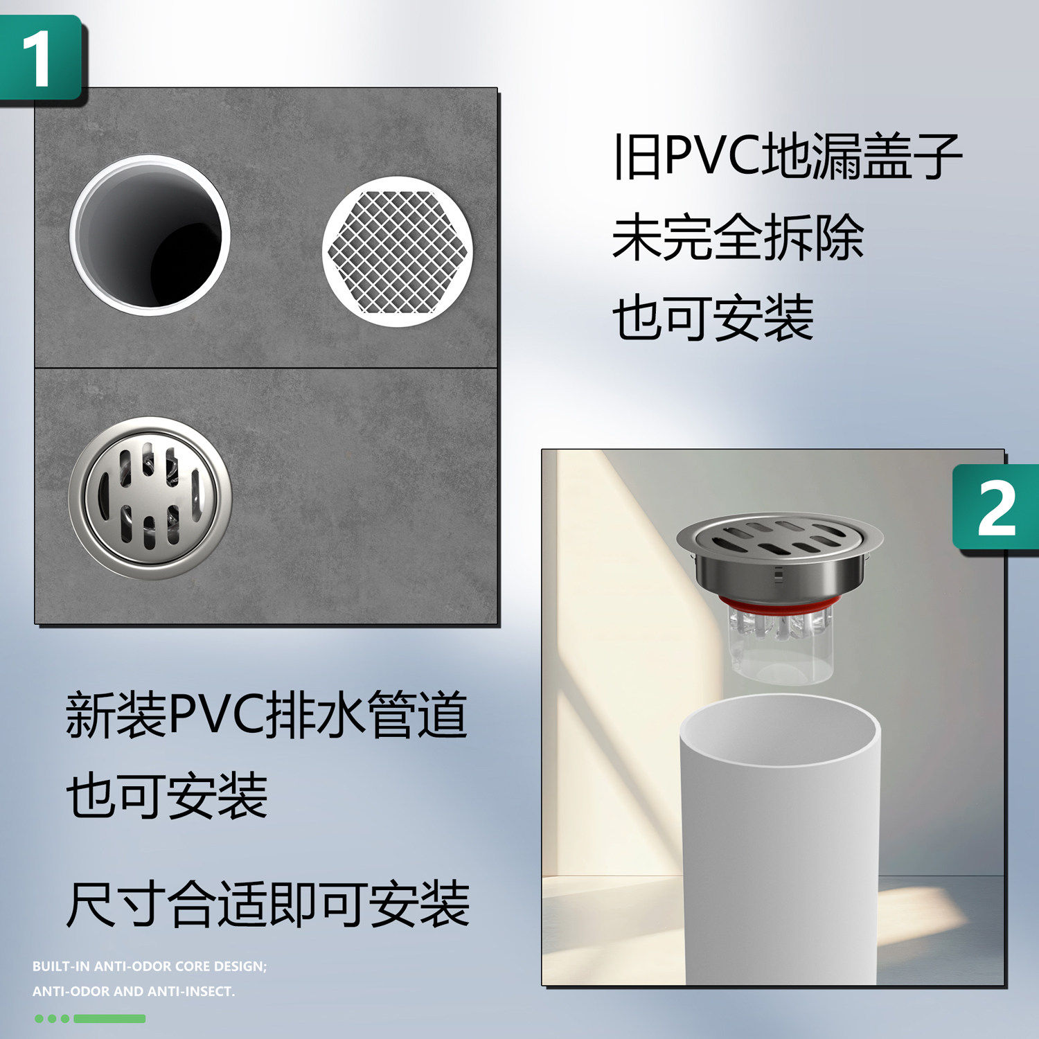 圆形304不锈钢内插式65/70/95/100防臭地漏50/75/110PVC管盖浴室