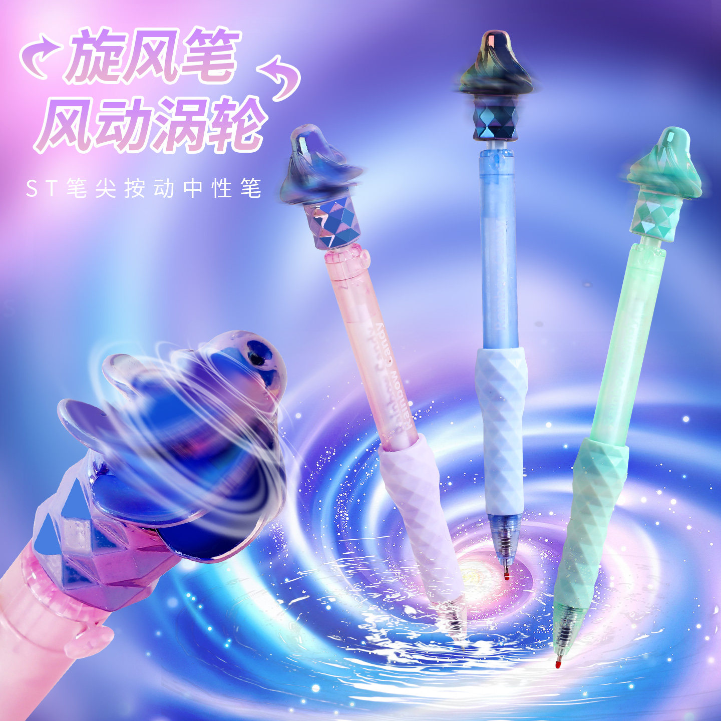 旋风转转按动中性笔螺旋陀螺旋转解压笔风动涡轮速干刷题黑笔st头