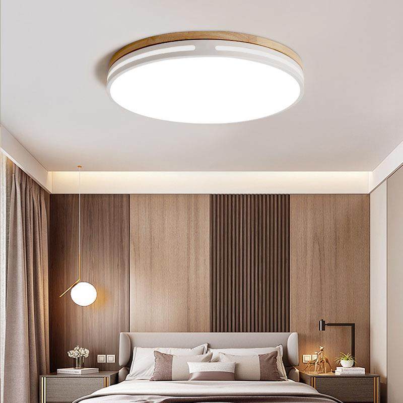 北欧原木简约超薄小卧室吸顶灯现代圆形创意设计客厅书房LED灯饰