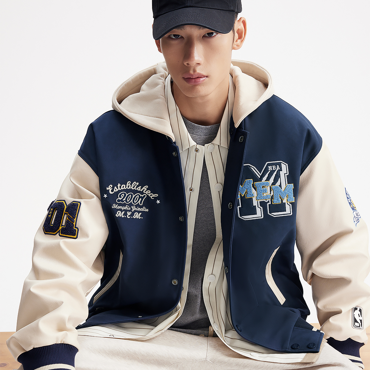 杰克琼斯NBA联名2026年春季新款男装宽松连帽棉服复古运动风外套