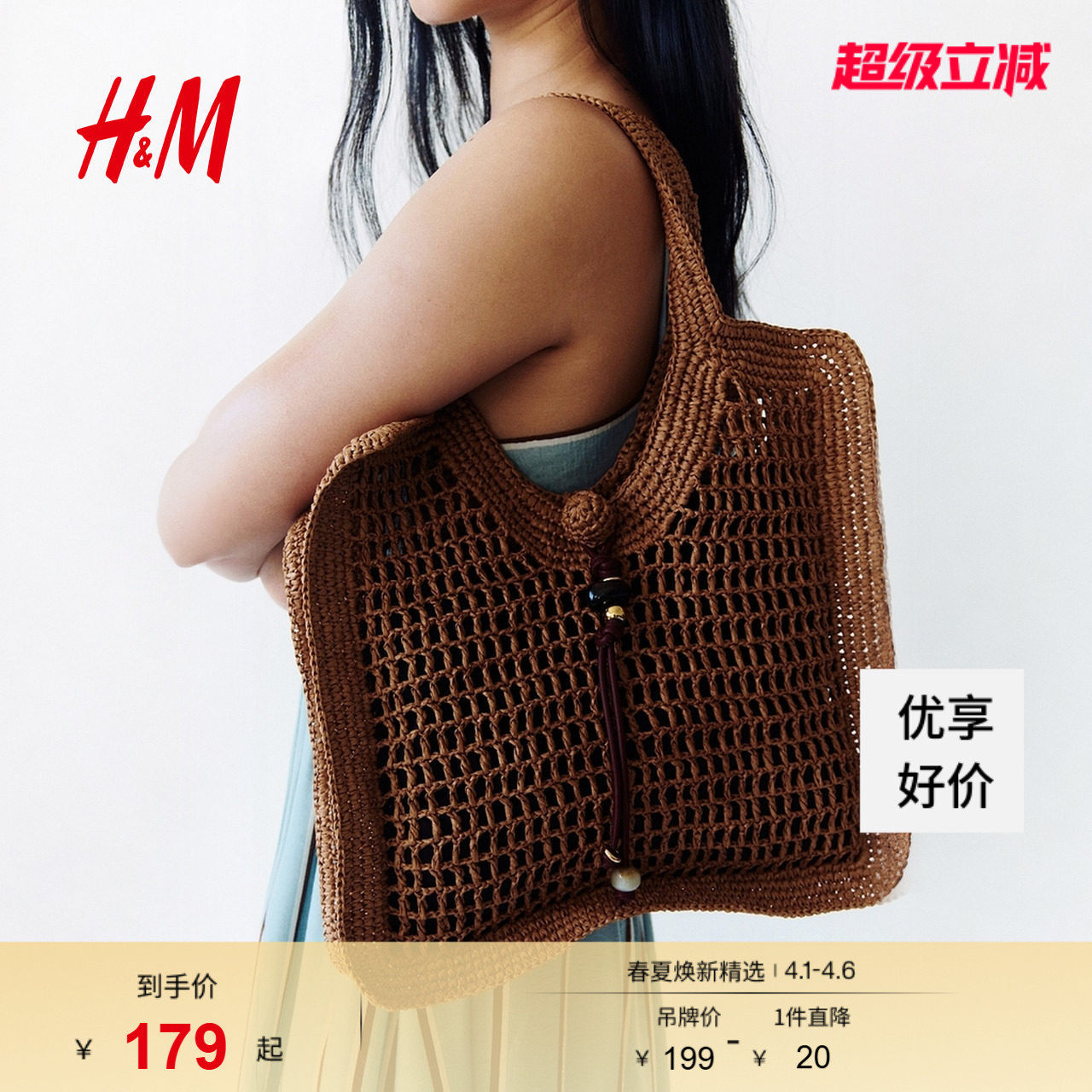 HM女士包袋2026春季新款度假风民族风时尚休闲草编托特包1322735