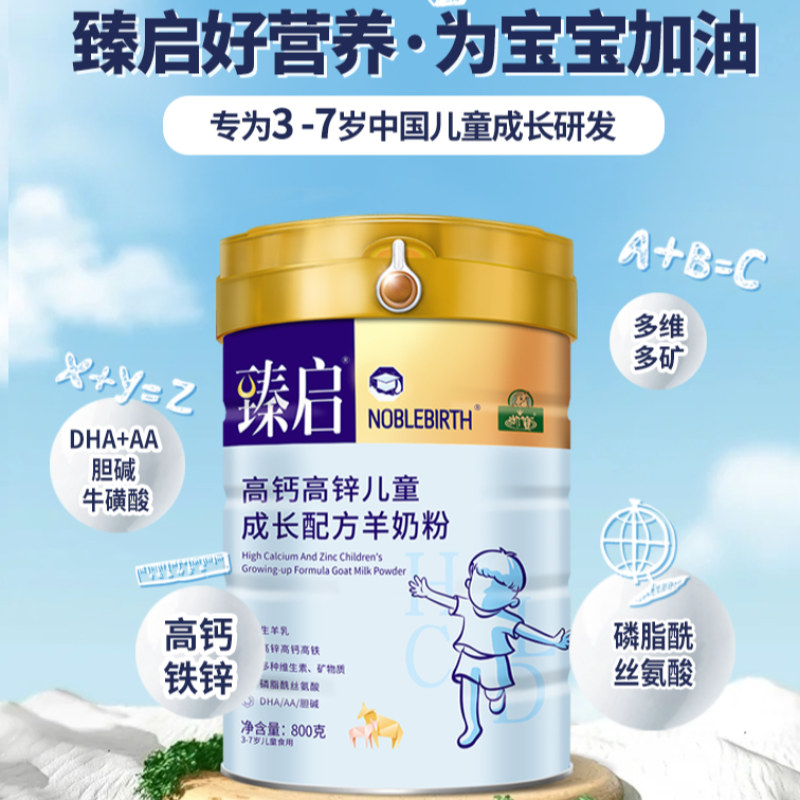 御宝臻启高钙高锌儿童成长配方羊奶粉 800克青少年学生