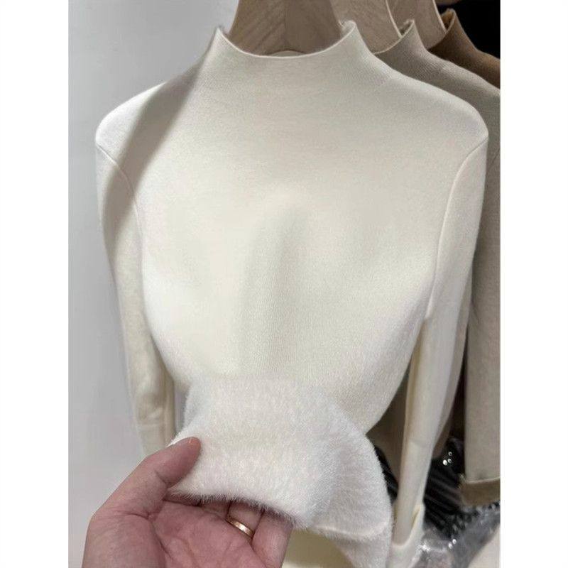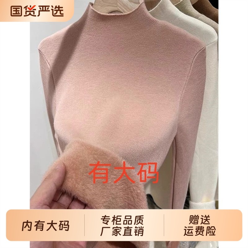加绒加厚一体绒半高领针织衫女2025秋冬季新款水貂绒大码内搭毛衣