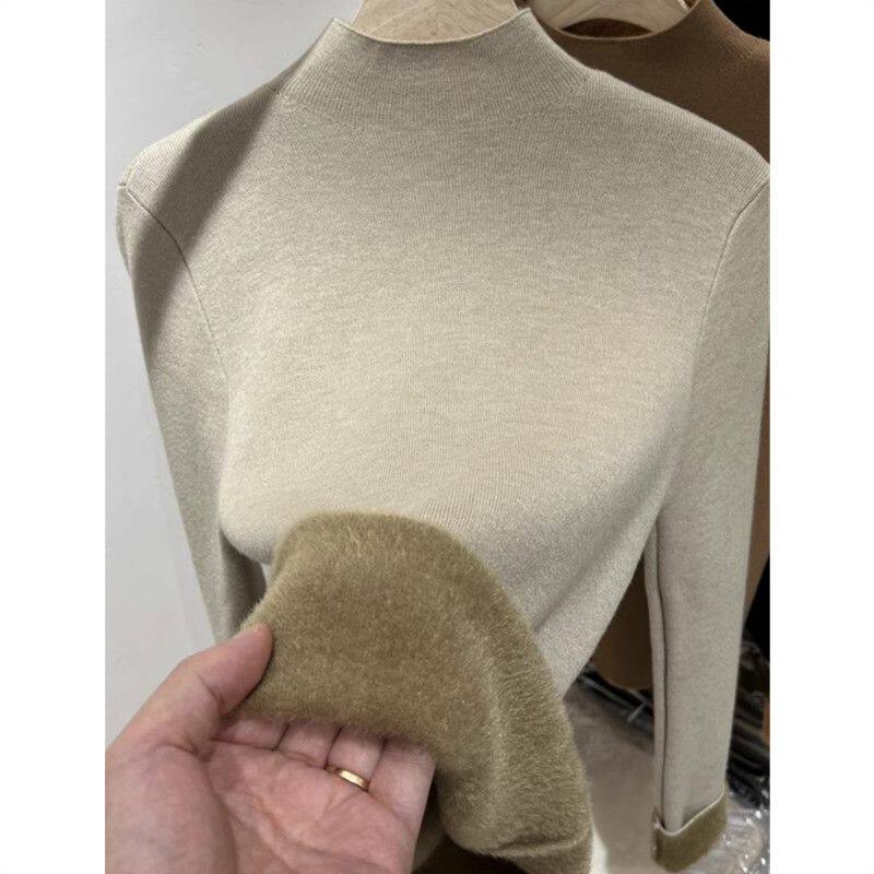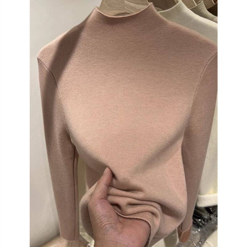 半高领德绒内搭打底衫女秋冬2025新款韩版洋气时尚上衣加绒保暖