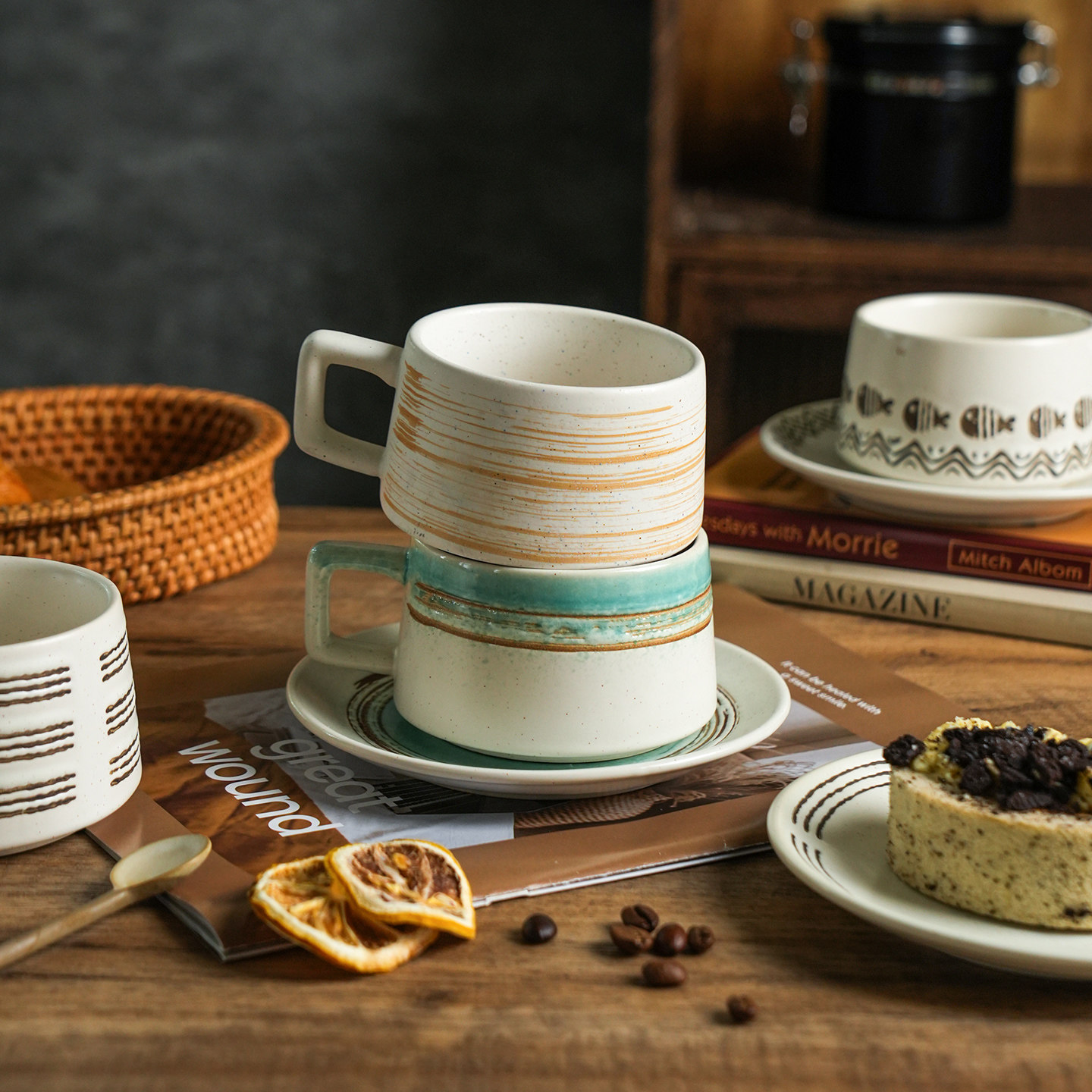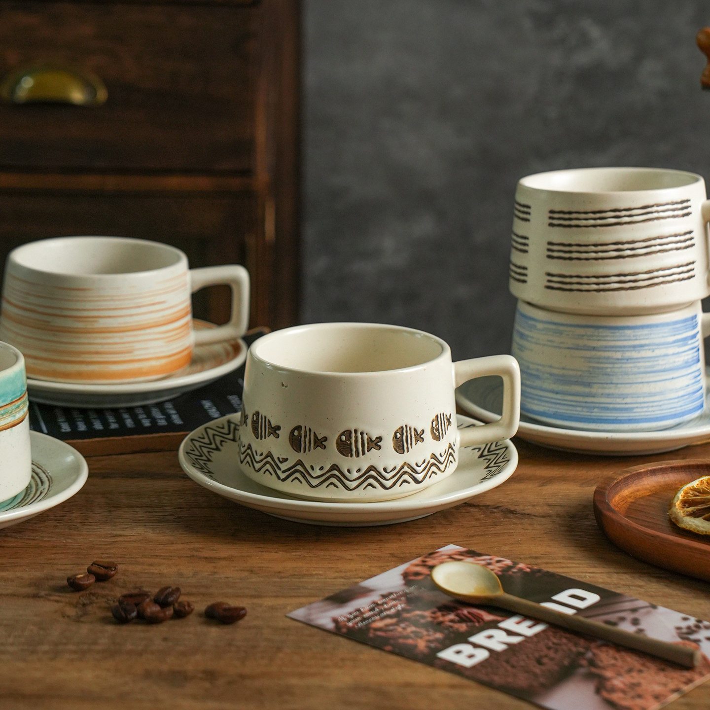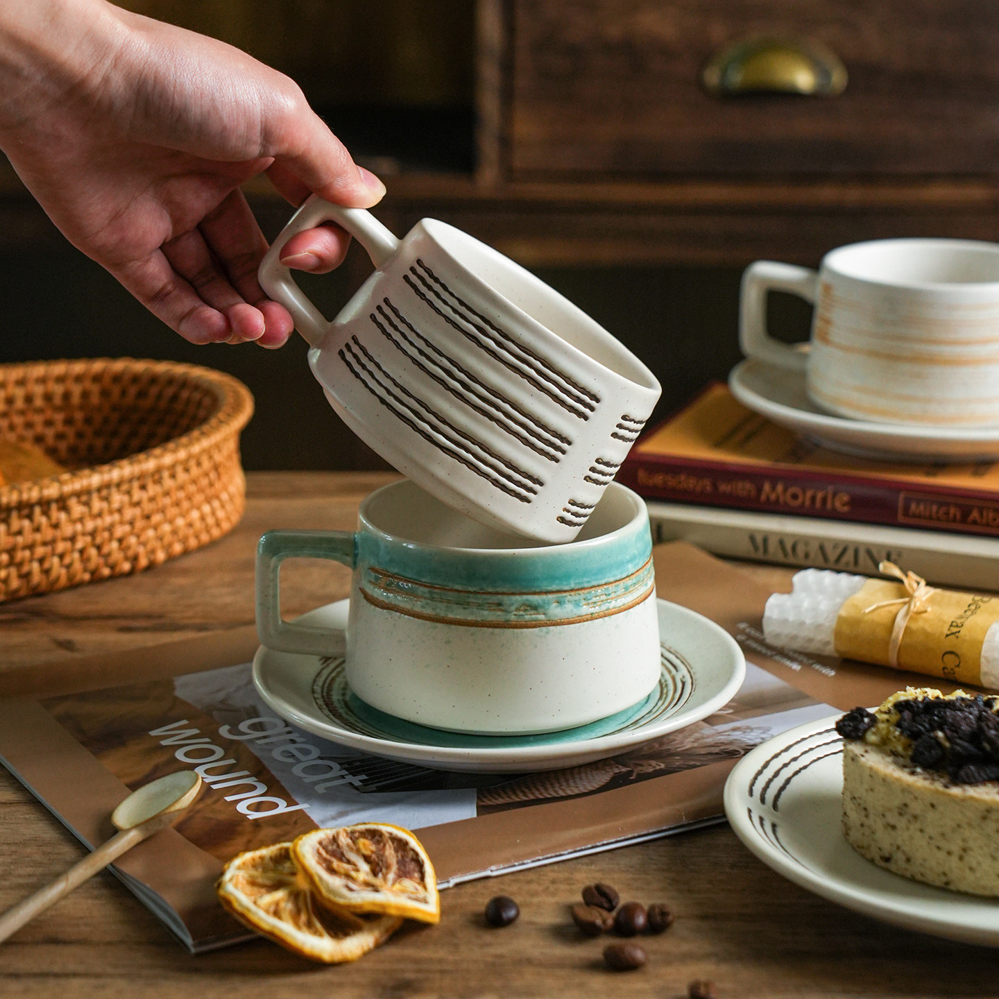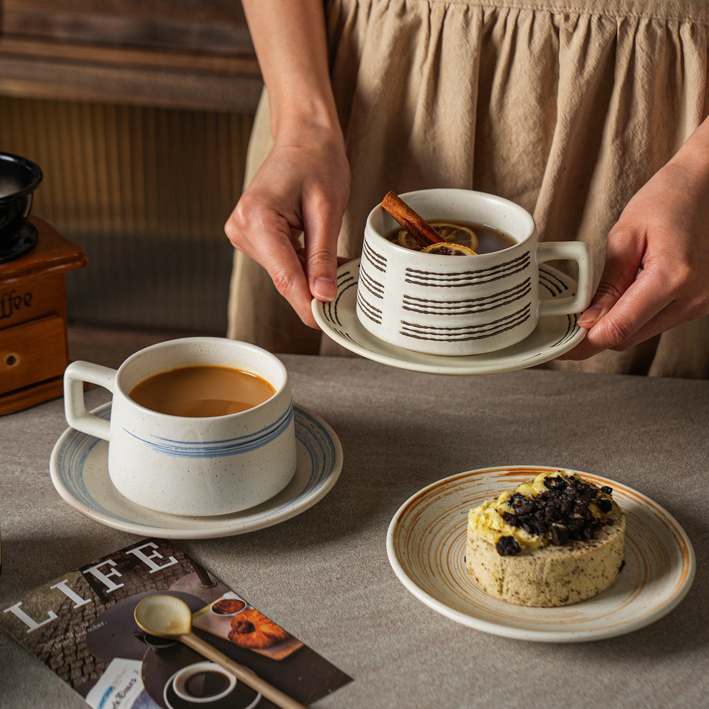 舍里高级感复古咖啡杯碟套装创意粗陶拉花杯子家用高档马克杯水杯