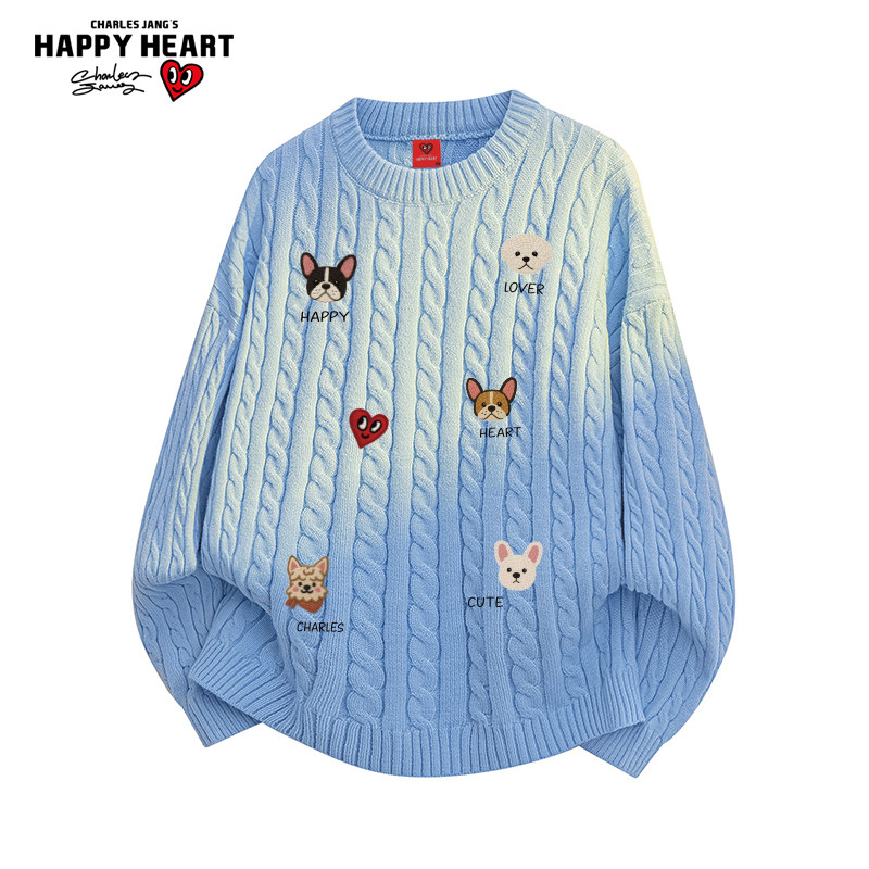 查尔斯桃心小狗印花毛衣男女冬季保暖加绒加