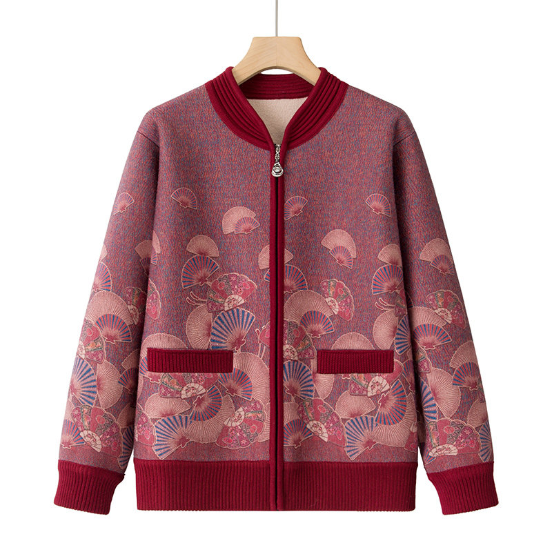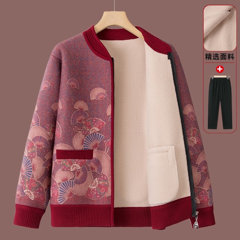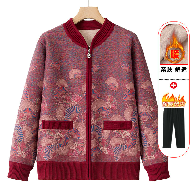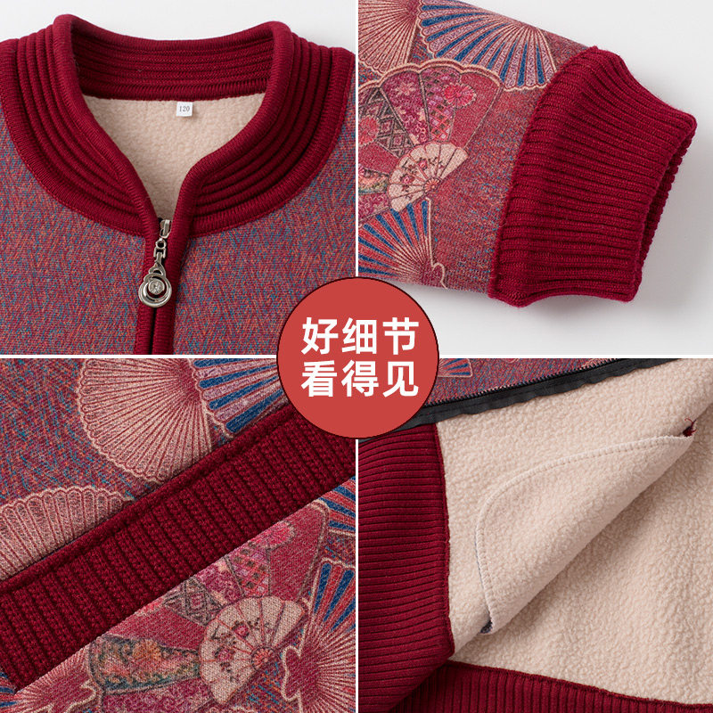 中老年人冬装外套女装妈妈加绒加厚奶奶装毛衣开衫老太太洋气上衣