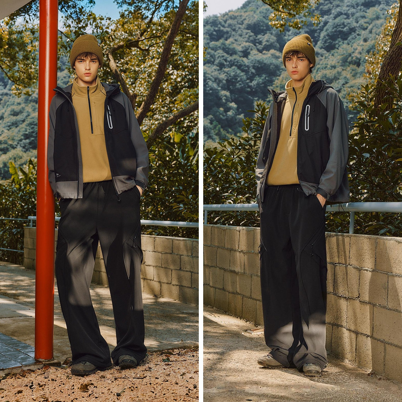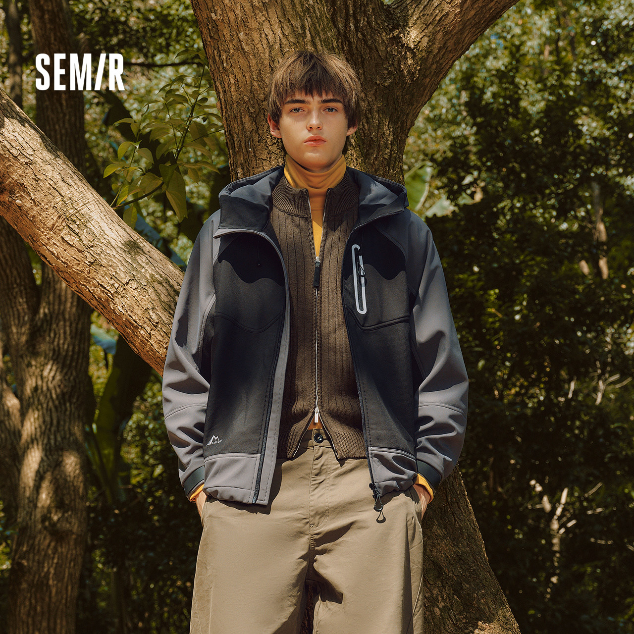 森马夹克男冬季加绒宽松连帽外套2025新款户外骑行撞色上衣时尚潮