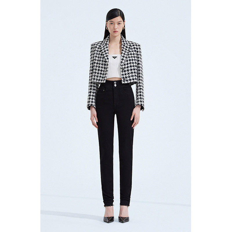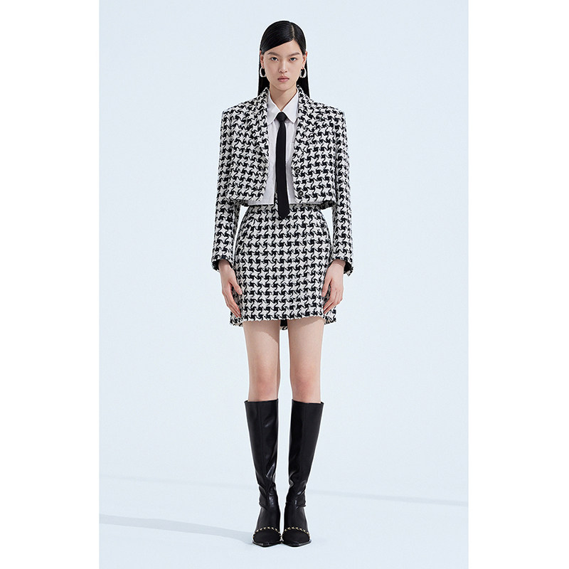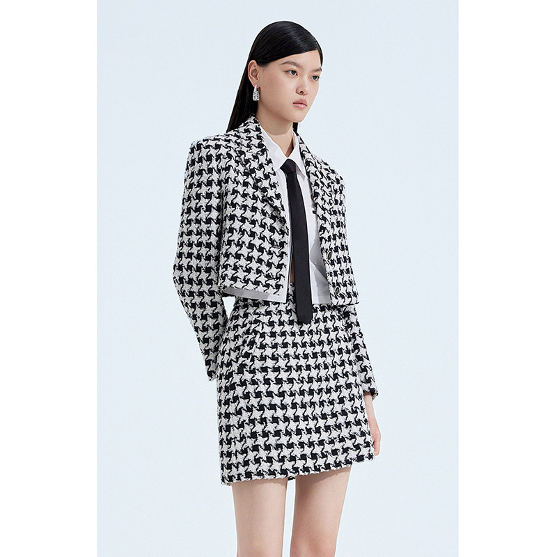 黑标系列欧时力千鸟格小香风西装外套女春装短款法式