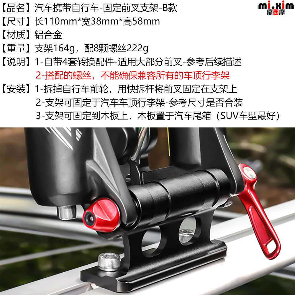 汽车携带自行车-固定前叉支架-汽车车顶架固定架快拆桶轴前叉托架