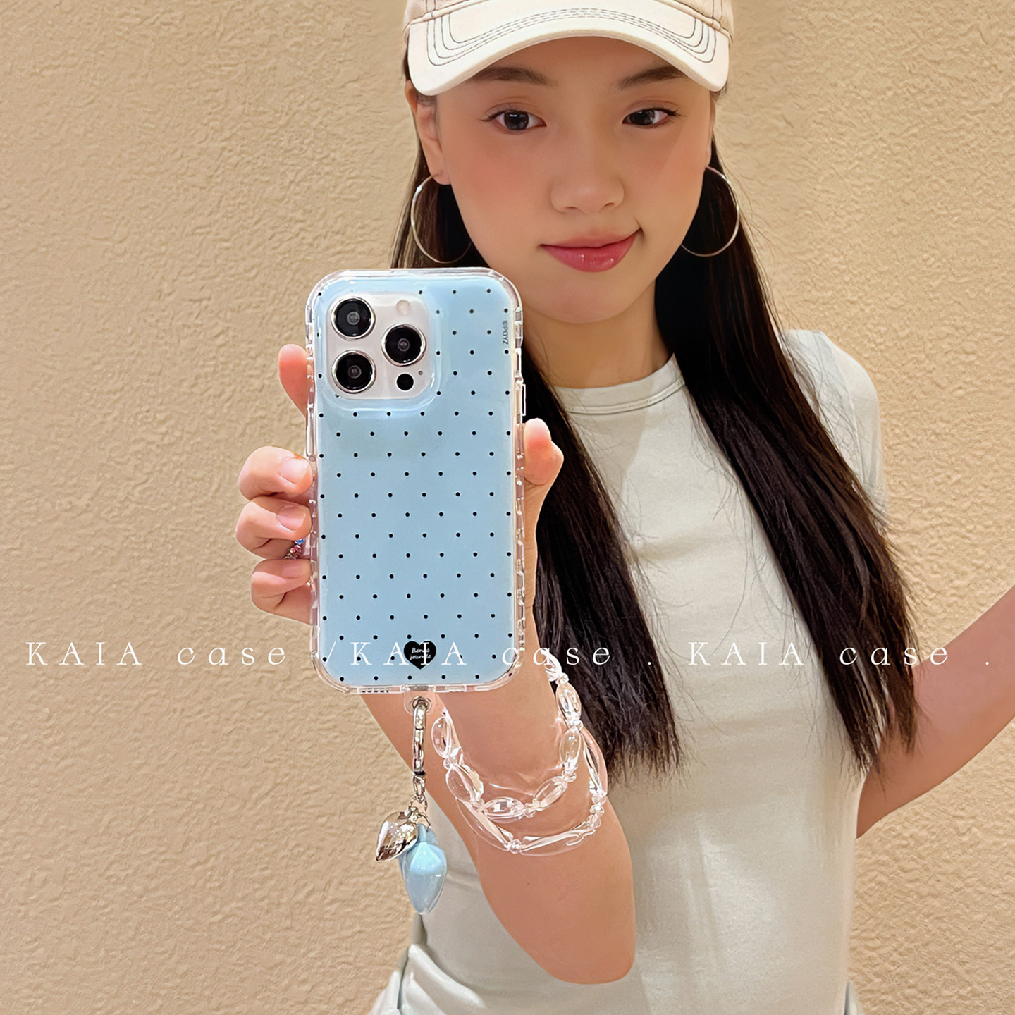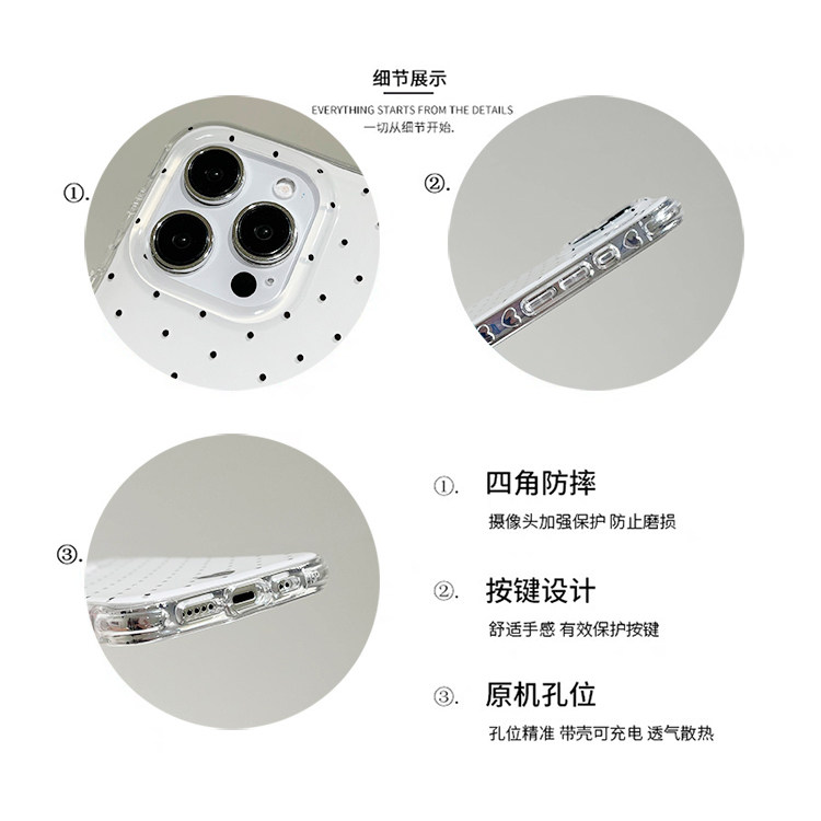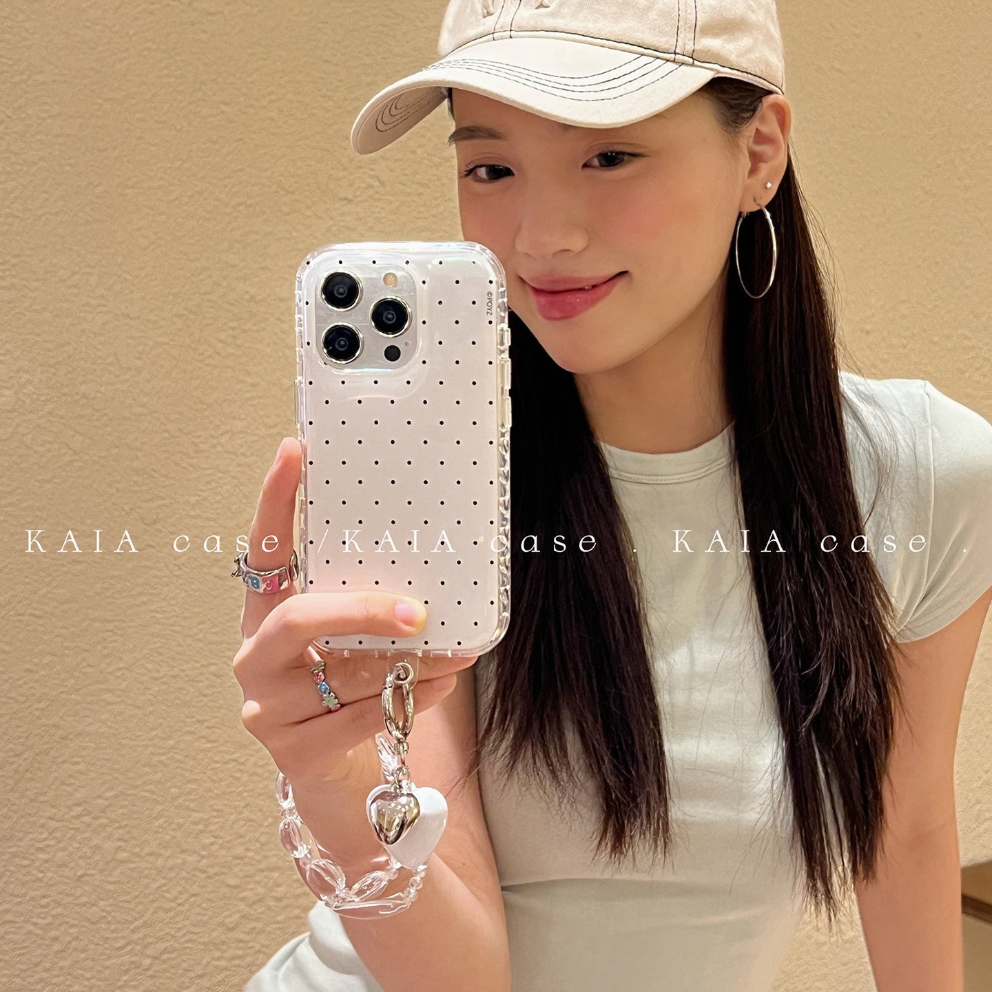 kaia 日韩ins简约纯色波点爱心适用苹果16promax手机壳iphone17pro新款15女13带挂件14pro创意双层防摔手机套