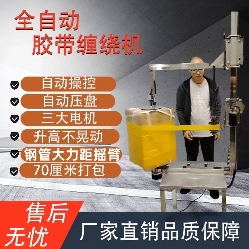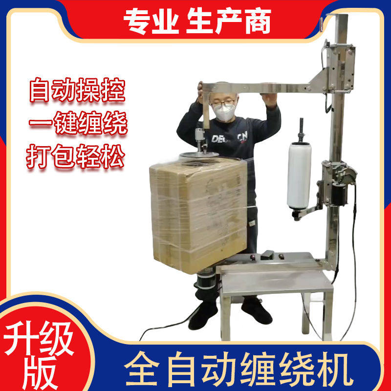 全自动缠绕膜打包机转盘预拉伸缠膜机电动压顶托盘薄膜打包裹膜机