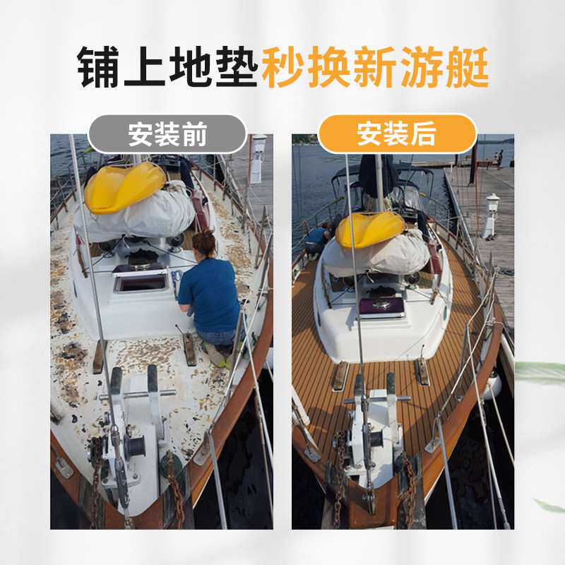 EVA仿柚木户外游艇用塑木地板船甲板房车软木棕+白防滑甲板地垫