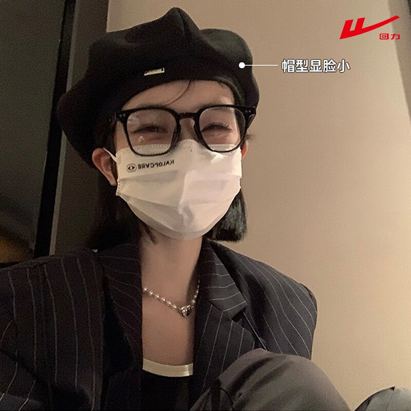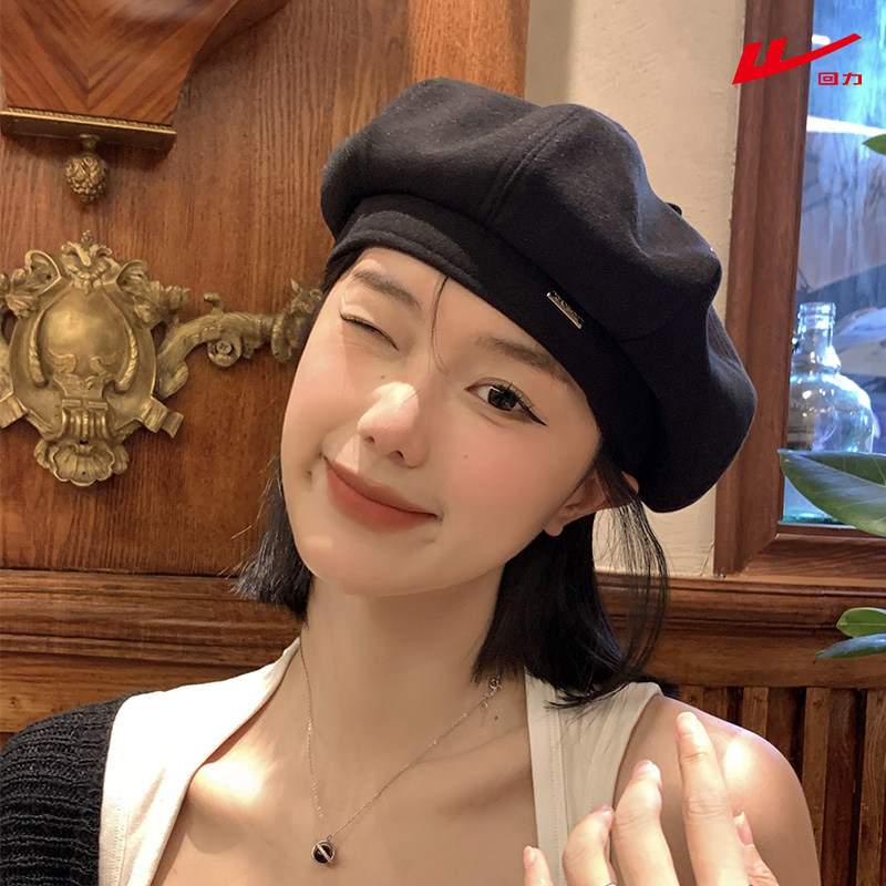 回力贝雷帽女春秋新款大头围蓓蕾帽显脸小八角画家帽冬季