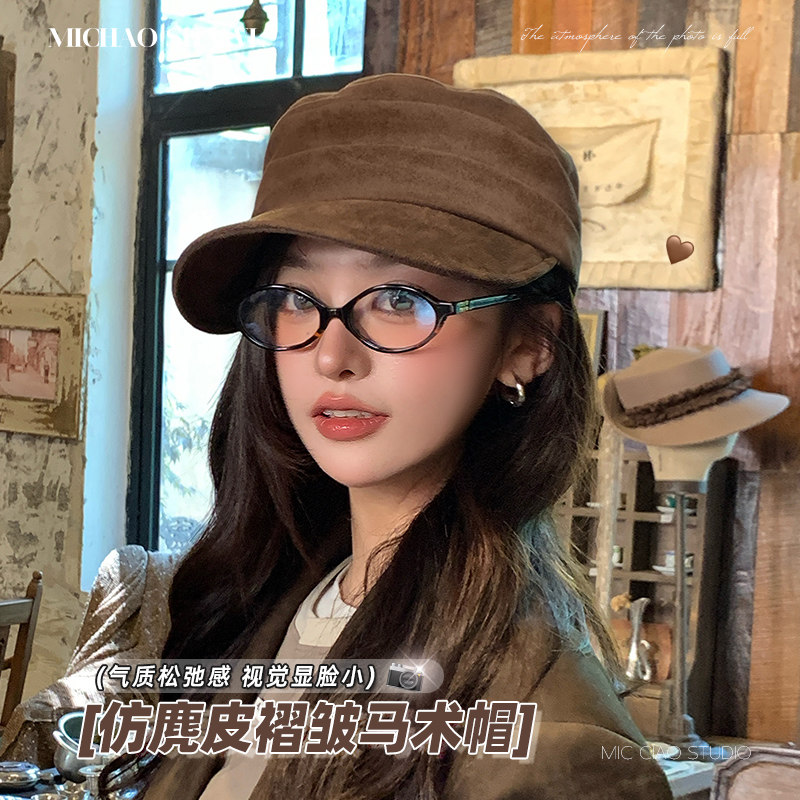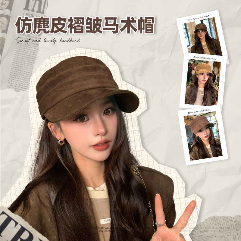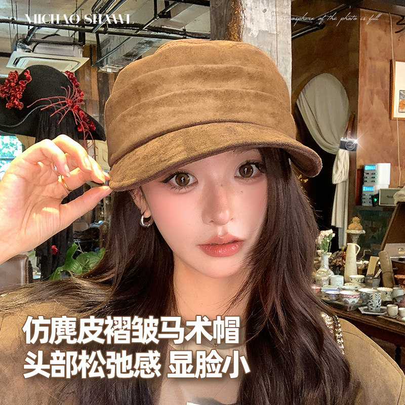 平顶帽子女2025新款贝雷帽大头围显脸小秋冬季休闲复古马术报童帽