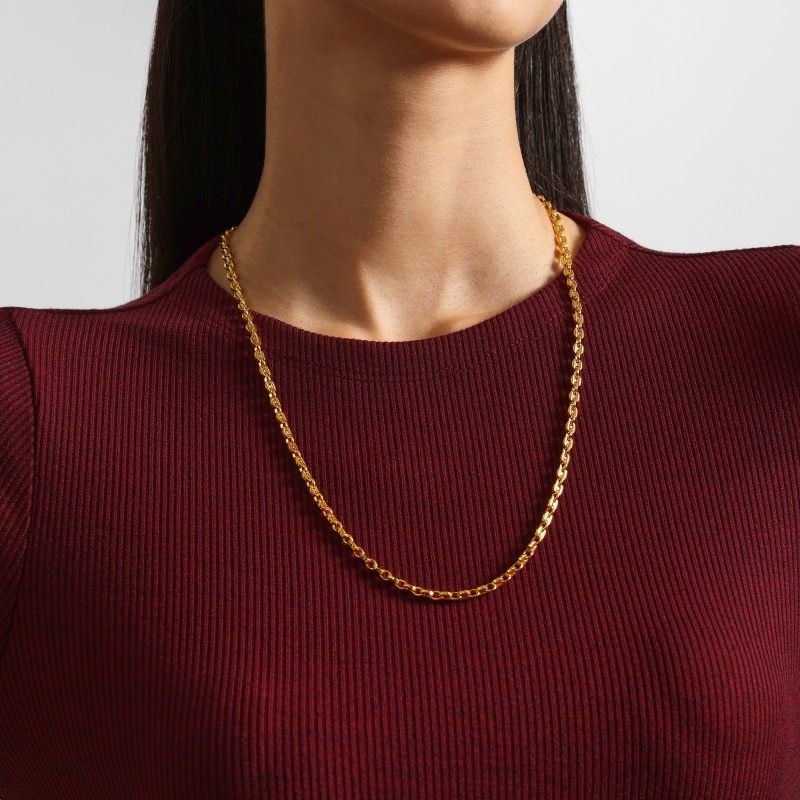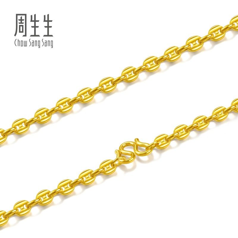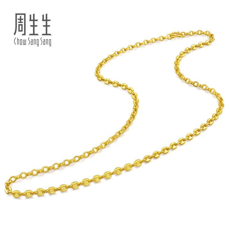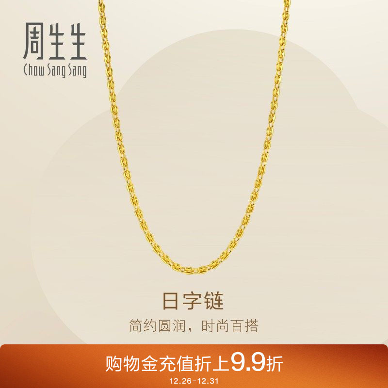 周生生爆闪黄金素链Essence永系列日字链足金项链96036N