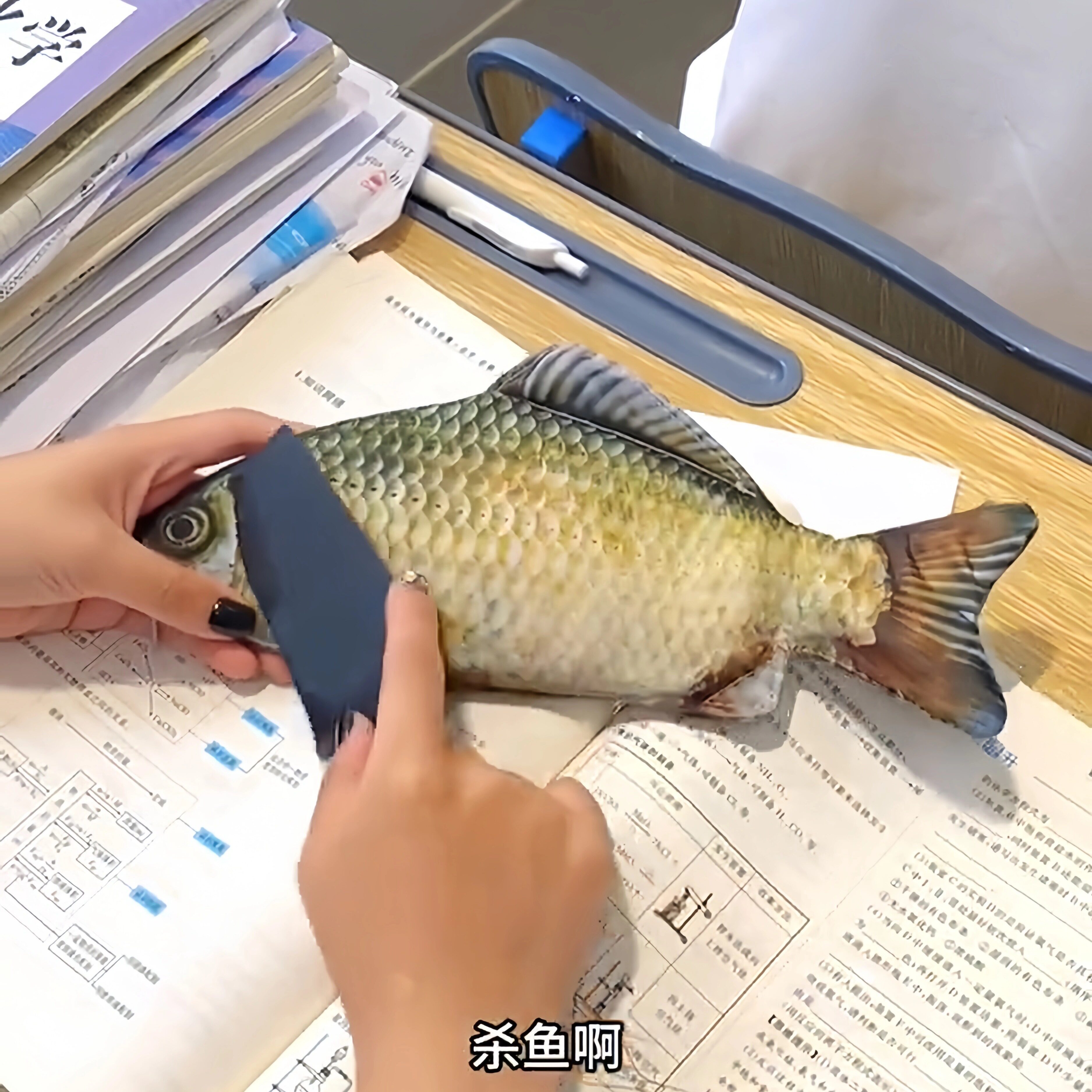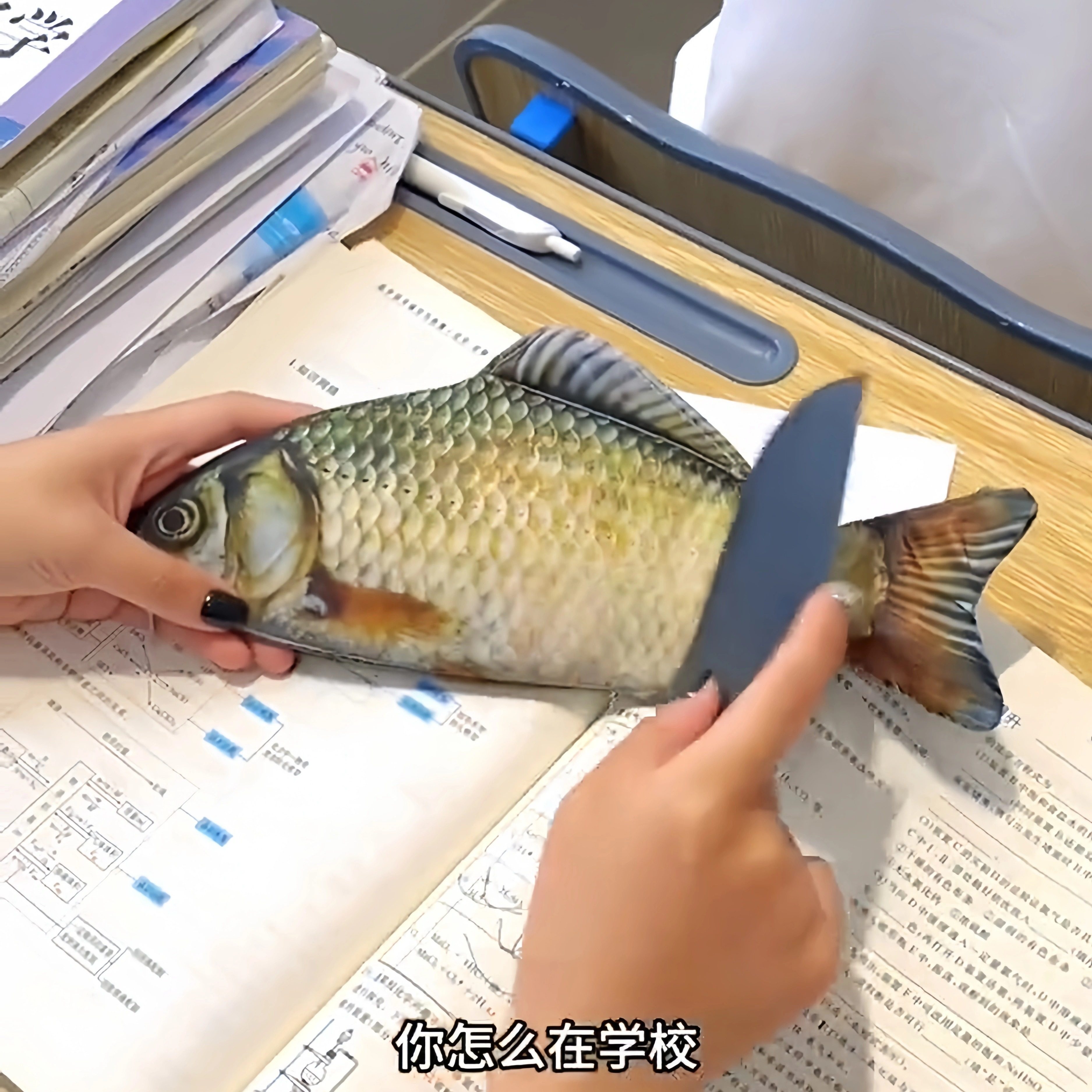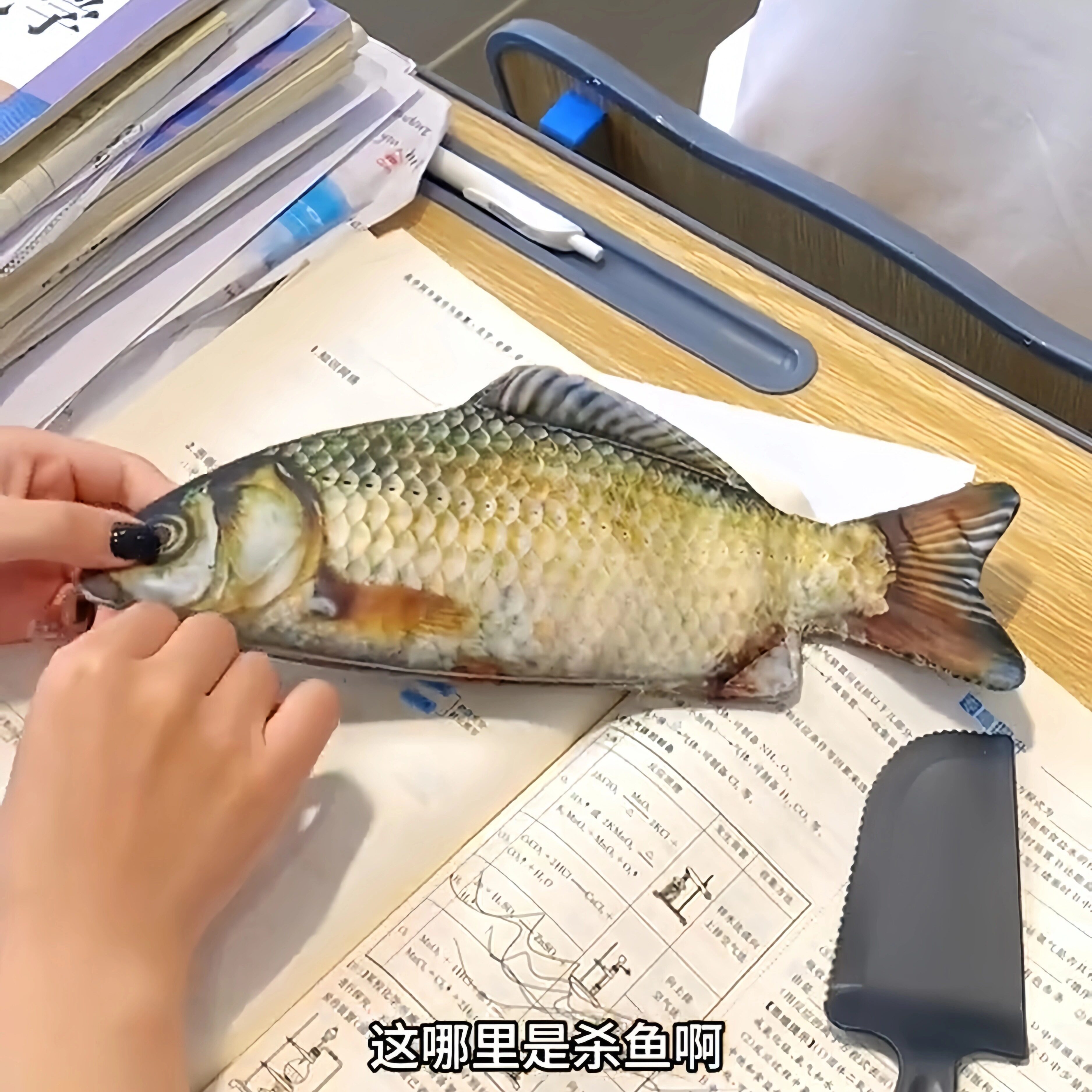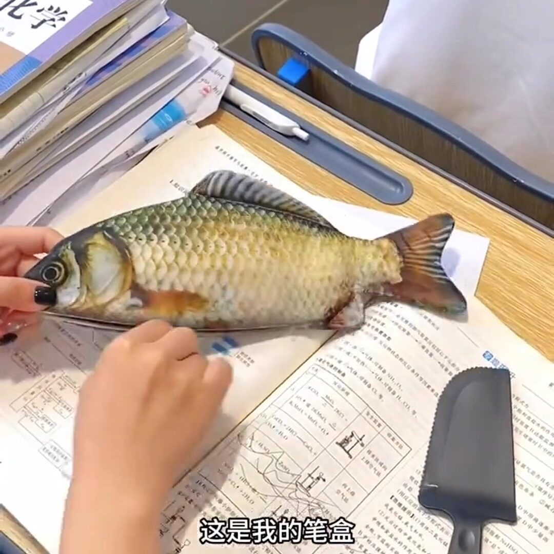 小红书同款创意仿真鲫鱼笔袋学生桌面搞怪收纳袋韩版咸鱼文具笔盒