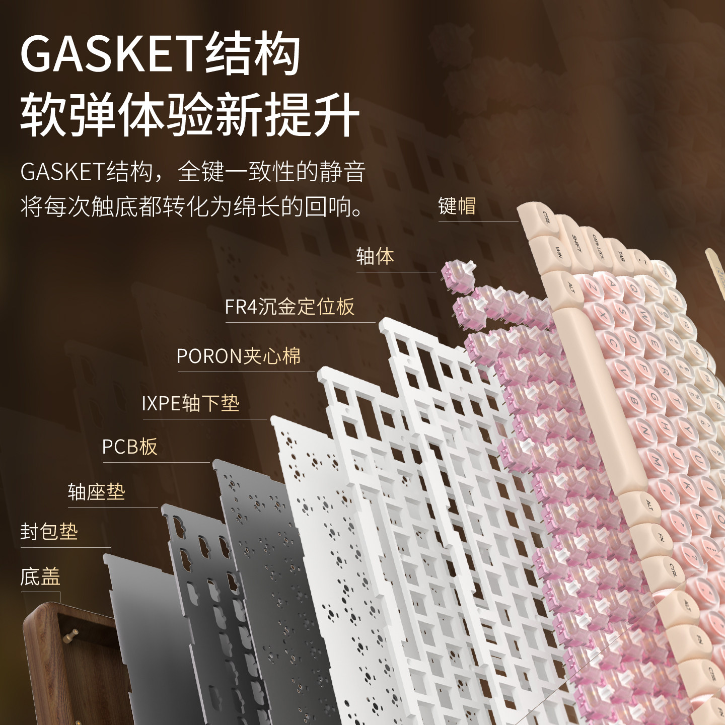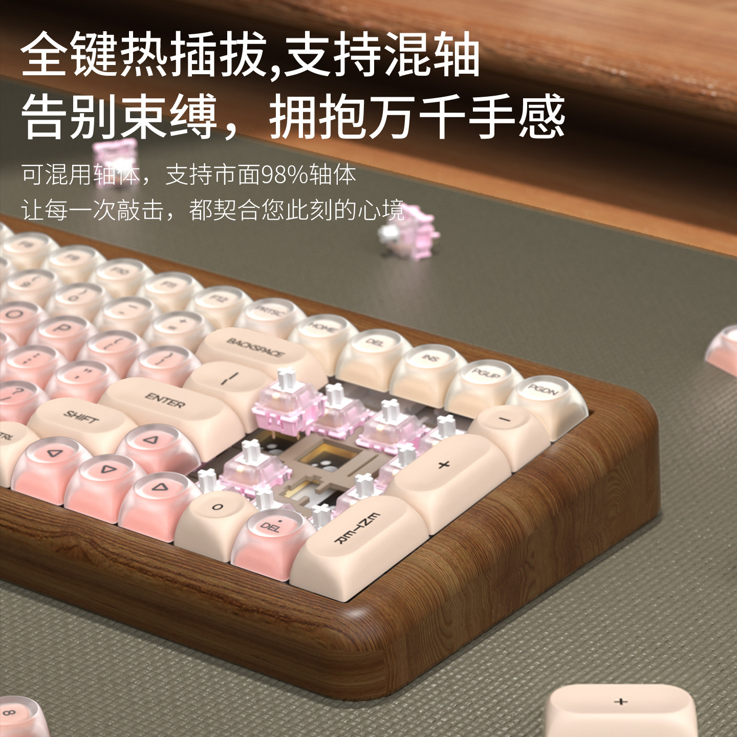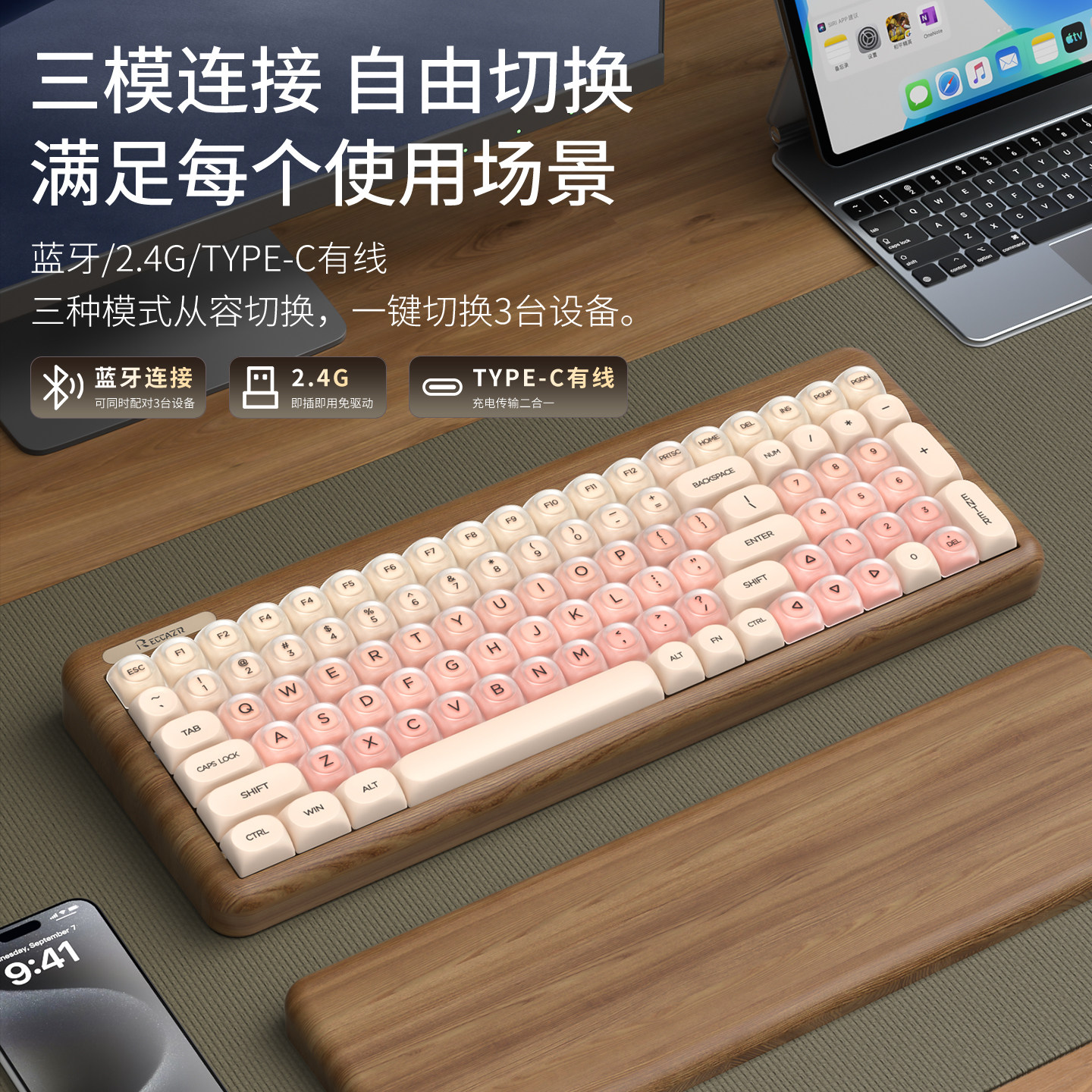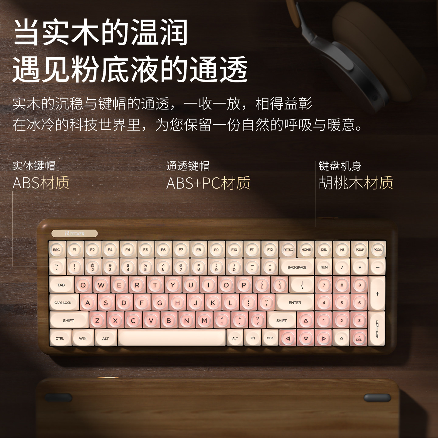 雷咖泽R100木坨坨甜心可可粉底液客制化机械键盘三模高颜值胡桃木