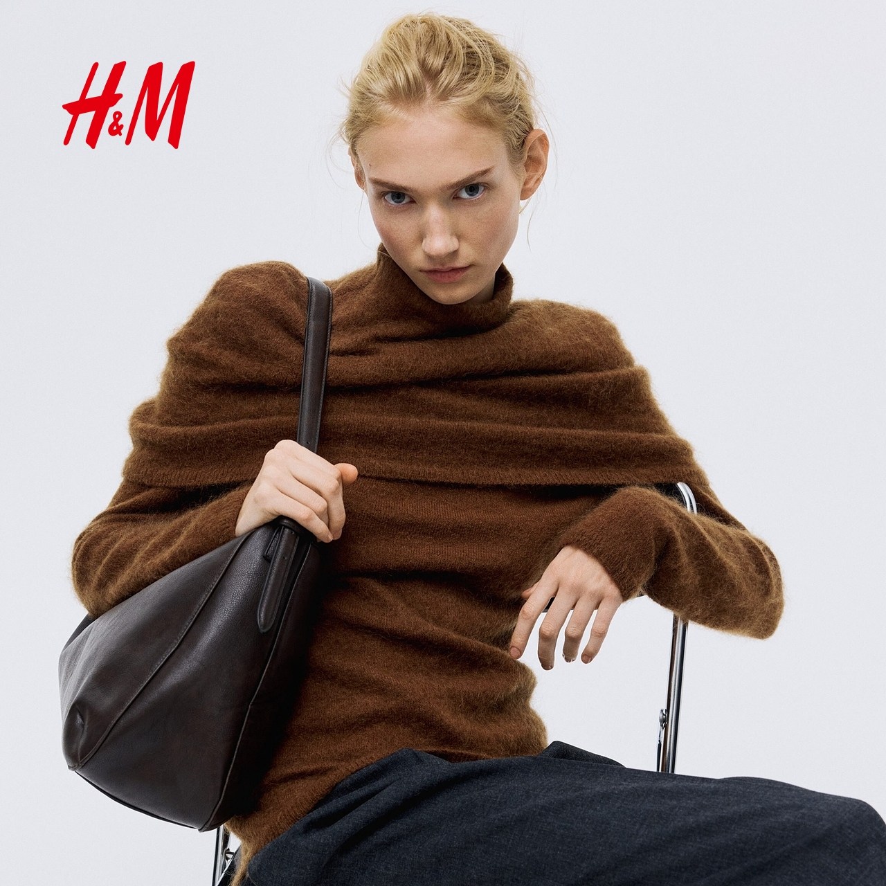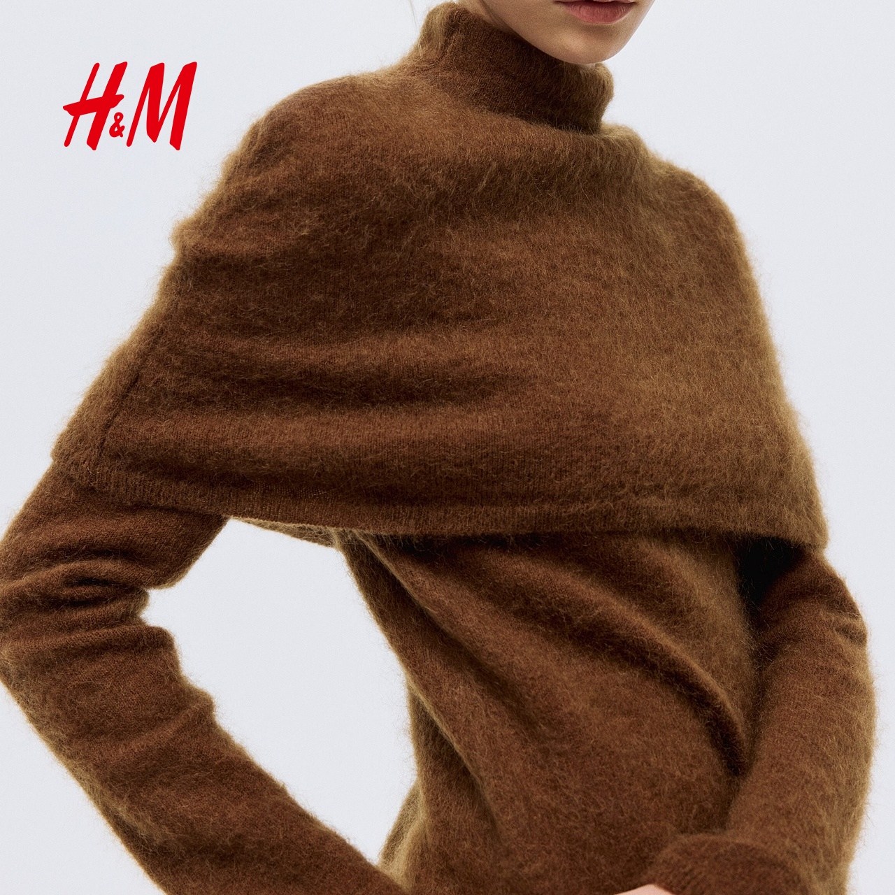 HM2025冬季新款女装马海毛混纺高领上衣1315620