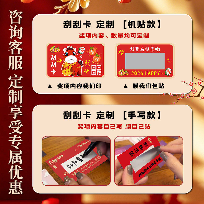 2026新年马年刮刮卡情侣自制卡通可爱创意贺卡年会团建抽奖刮刮卡