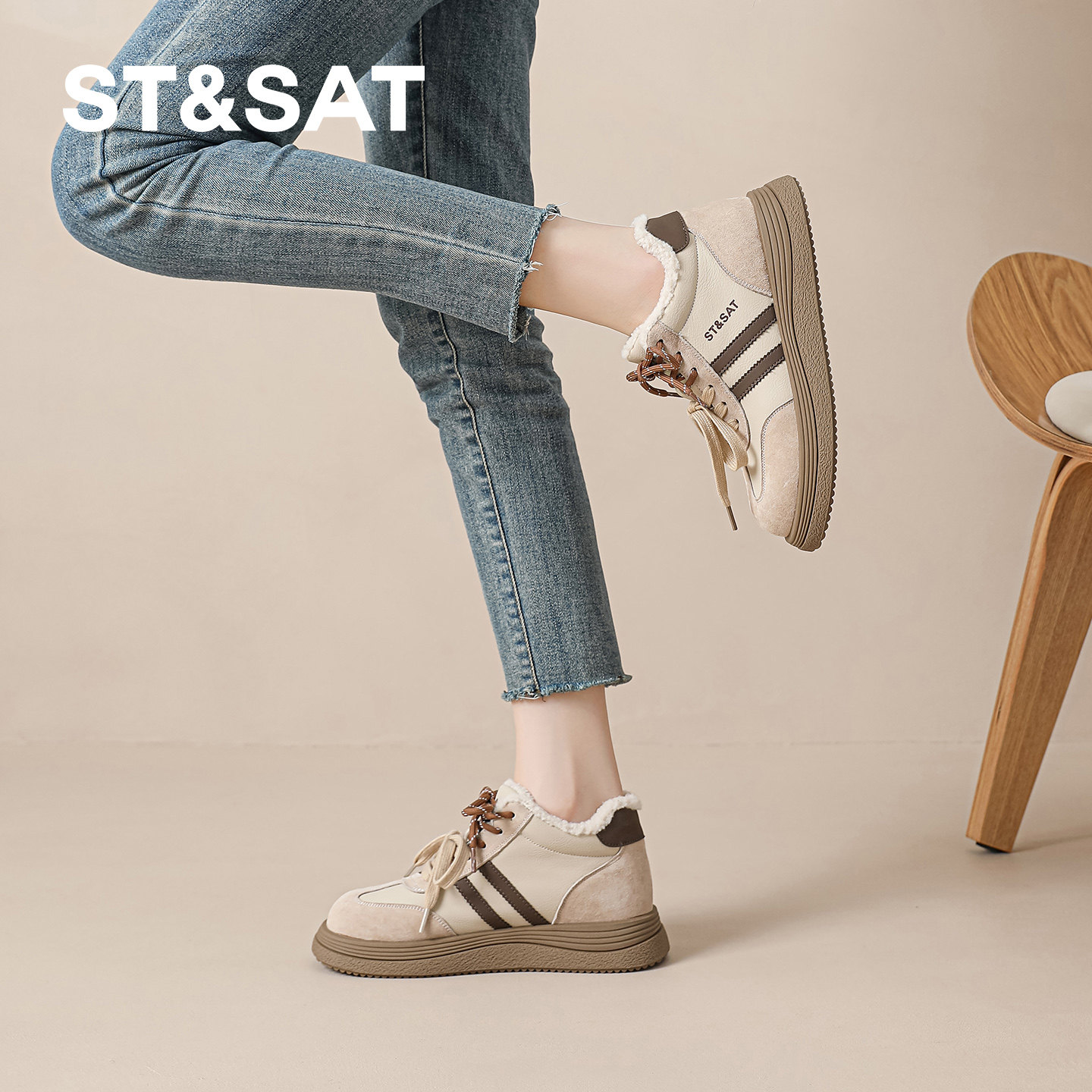 星期六厚底德训鞋女2025冬季新款加绒棉鞋运动女鞋高帮阿甘鞋板鞋