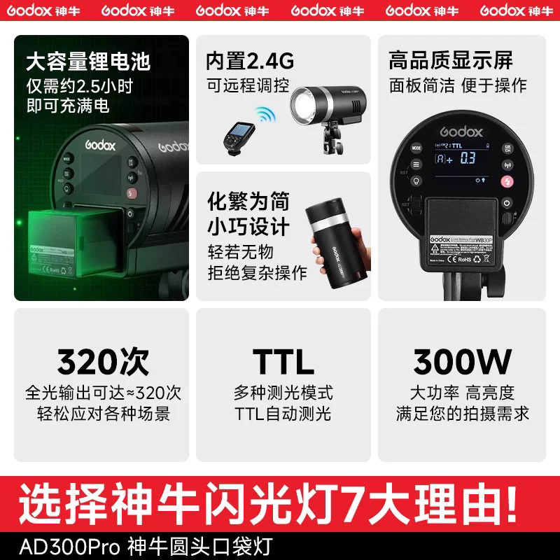 神牛AD300pro ii 二代外拍灯闪光灯摄影灯补光灯口袋灯便携300W户外单反补光高速同步TTL自动测光锂电闪光