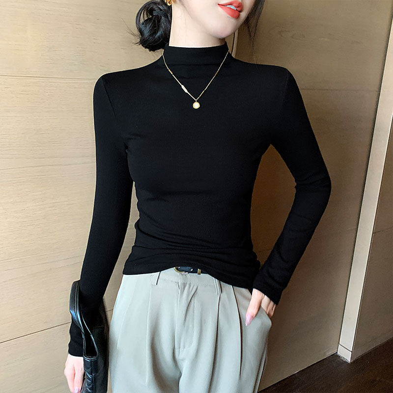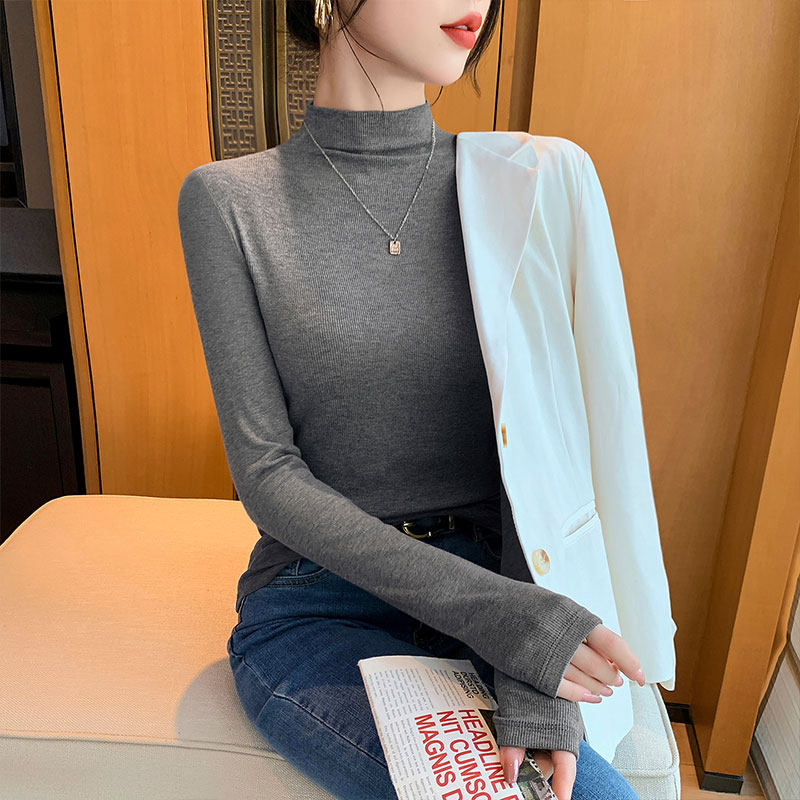 半高领打底衫女正肩短袖t恤女中袖内搭2025新款螺纹春秋夏上衣服