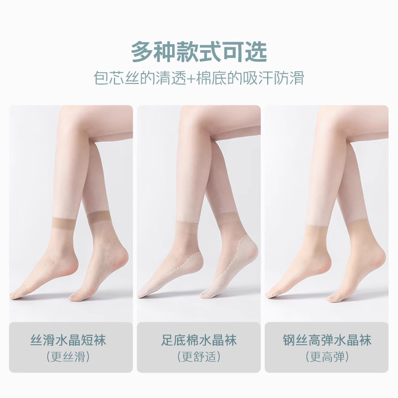 丝袜女夏薄款纯棉底防滑短袜夏天防勾丝袜子女士肉色水晶丝中筒袜